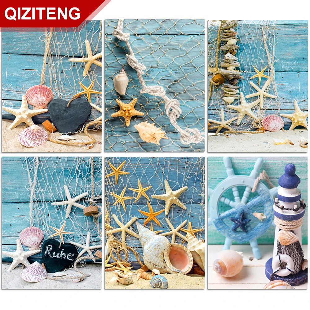 QIZITENG Diy пейзаж брильянтовая картина квадраткруглая Алмазная вышивка крестиком в виде морской звезды декоративная мозаика из стразов на подарок