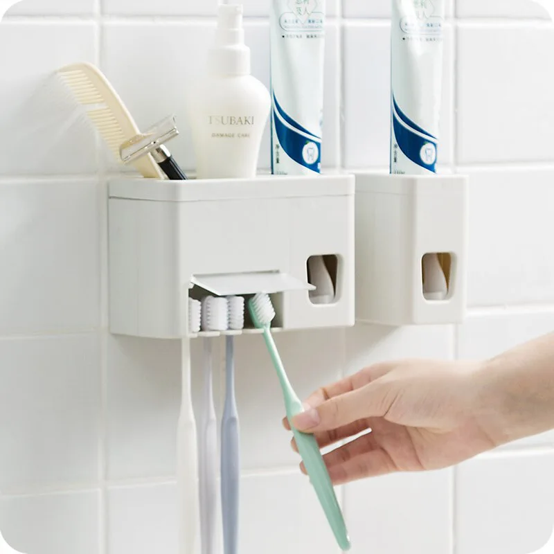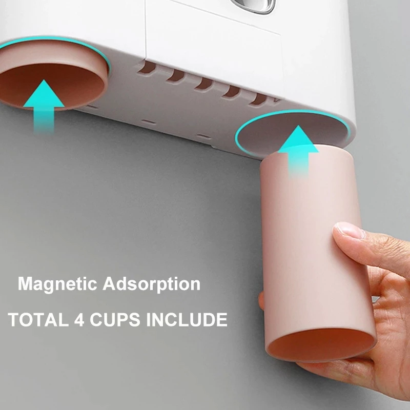 Настенный автоматический дозатор зубной пасты, 4 держателя для зубных щеток
