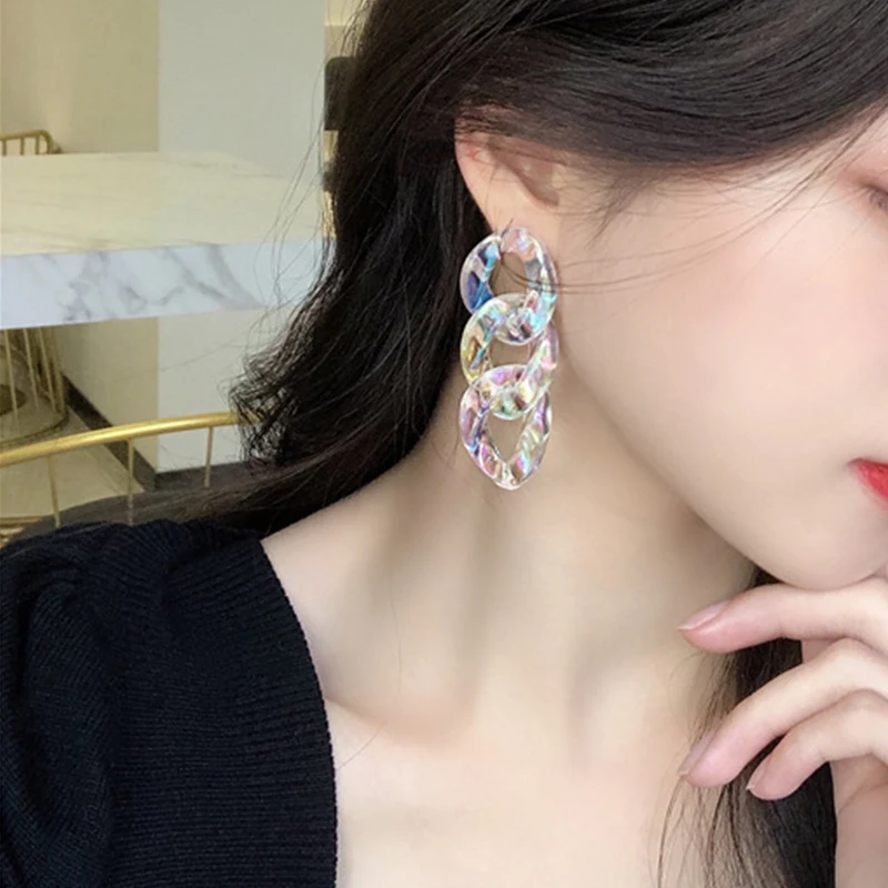 Акриловые серьги женские трендовые панк корейские полимерные кубинские цепочки прозрачные геометрические серьги в форме цветка богемные ювелирные изделия