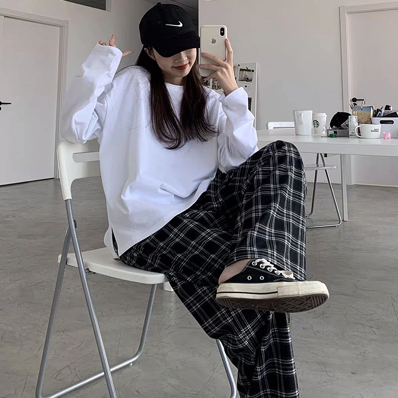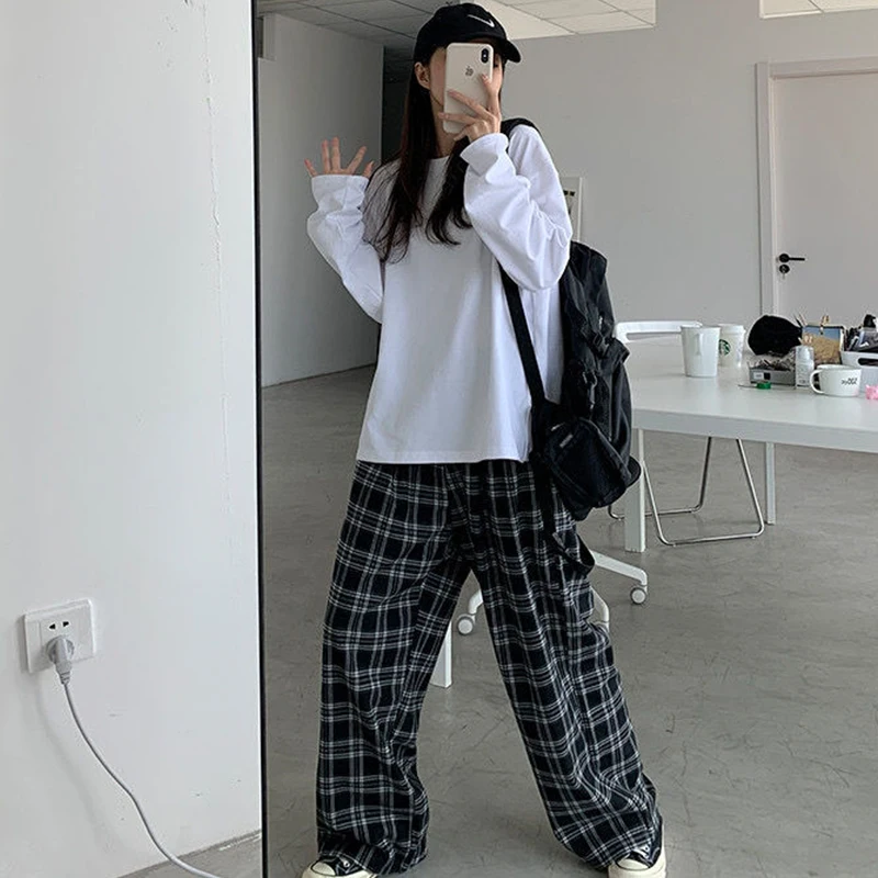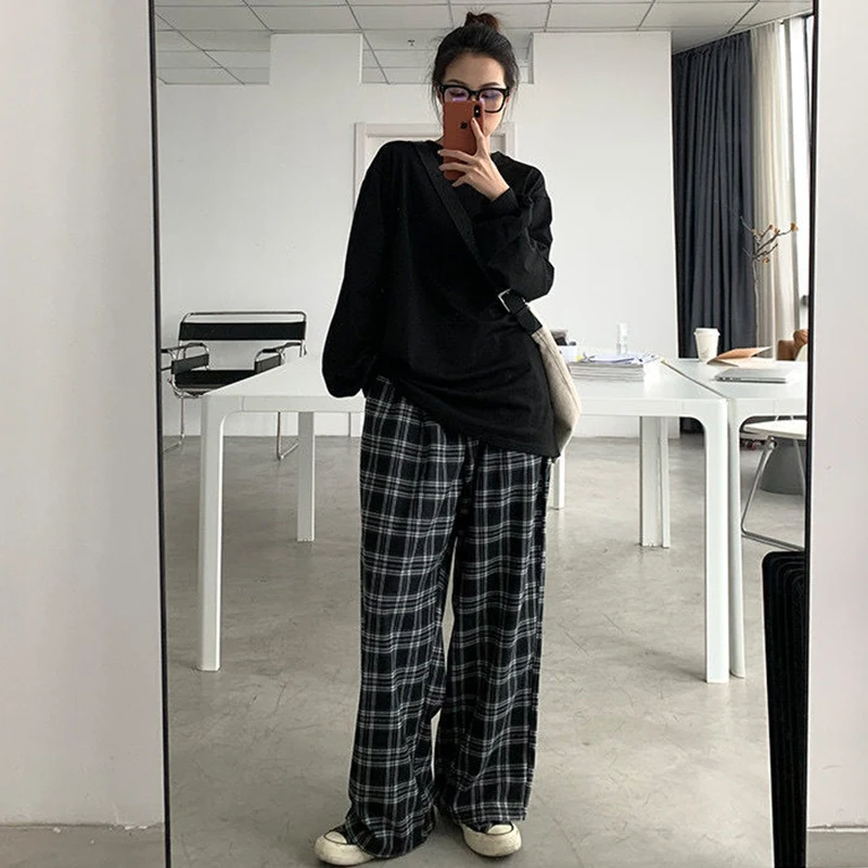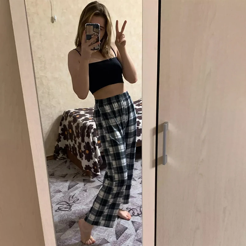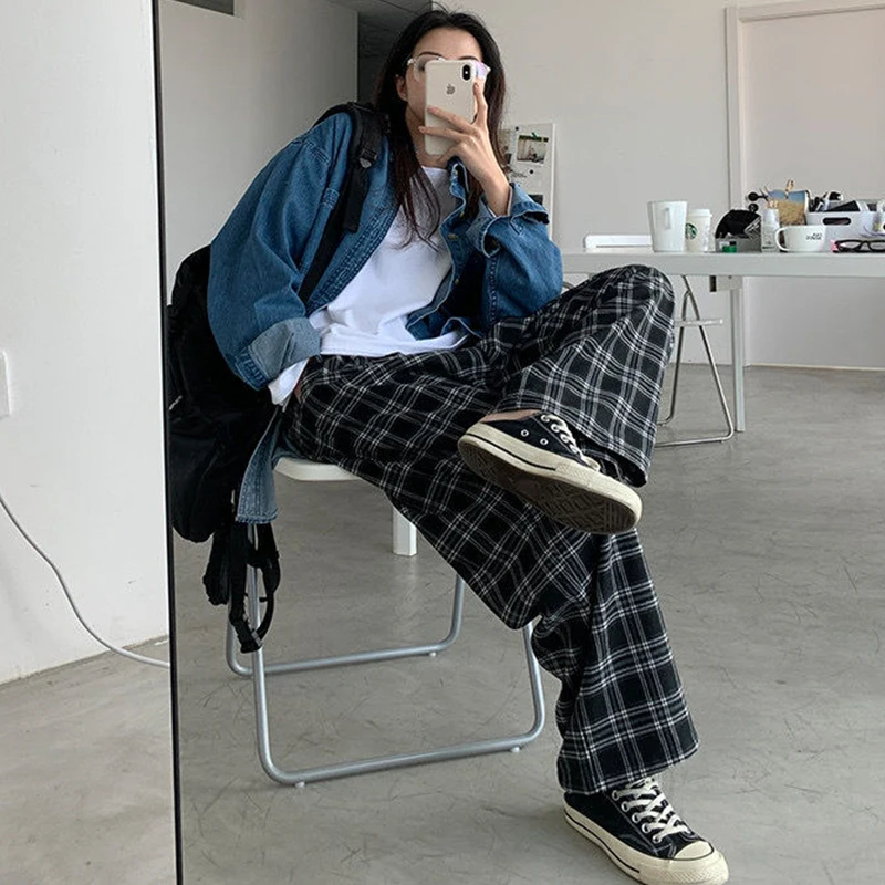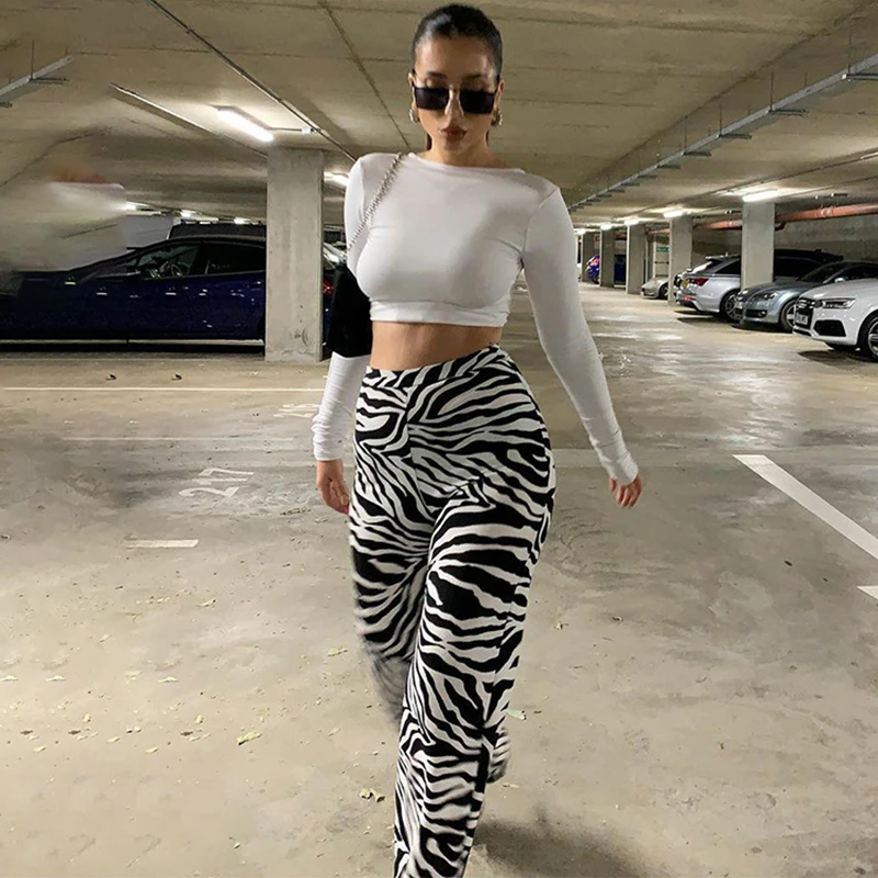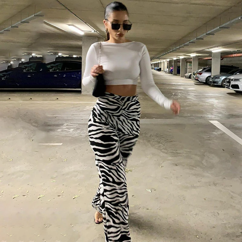 Брюки ZZSYKD женские с принтом зебры, Длинные Модные свободные повседневные клетчатые штаны с завышенной талией и широкими штанинами, уличная одежда, большие размеры