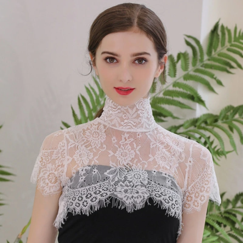 Женский съемный фальшивый воротник полурубашка блузка Милая вязаная крючком Прозрачная Кружевная Цветочная кружевная свадебное платье накидка на шею