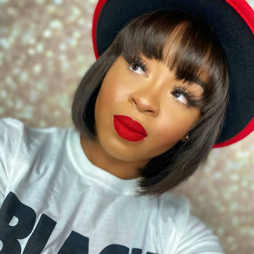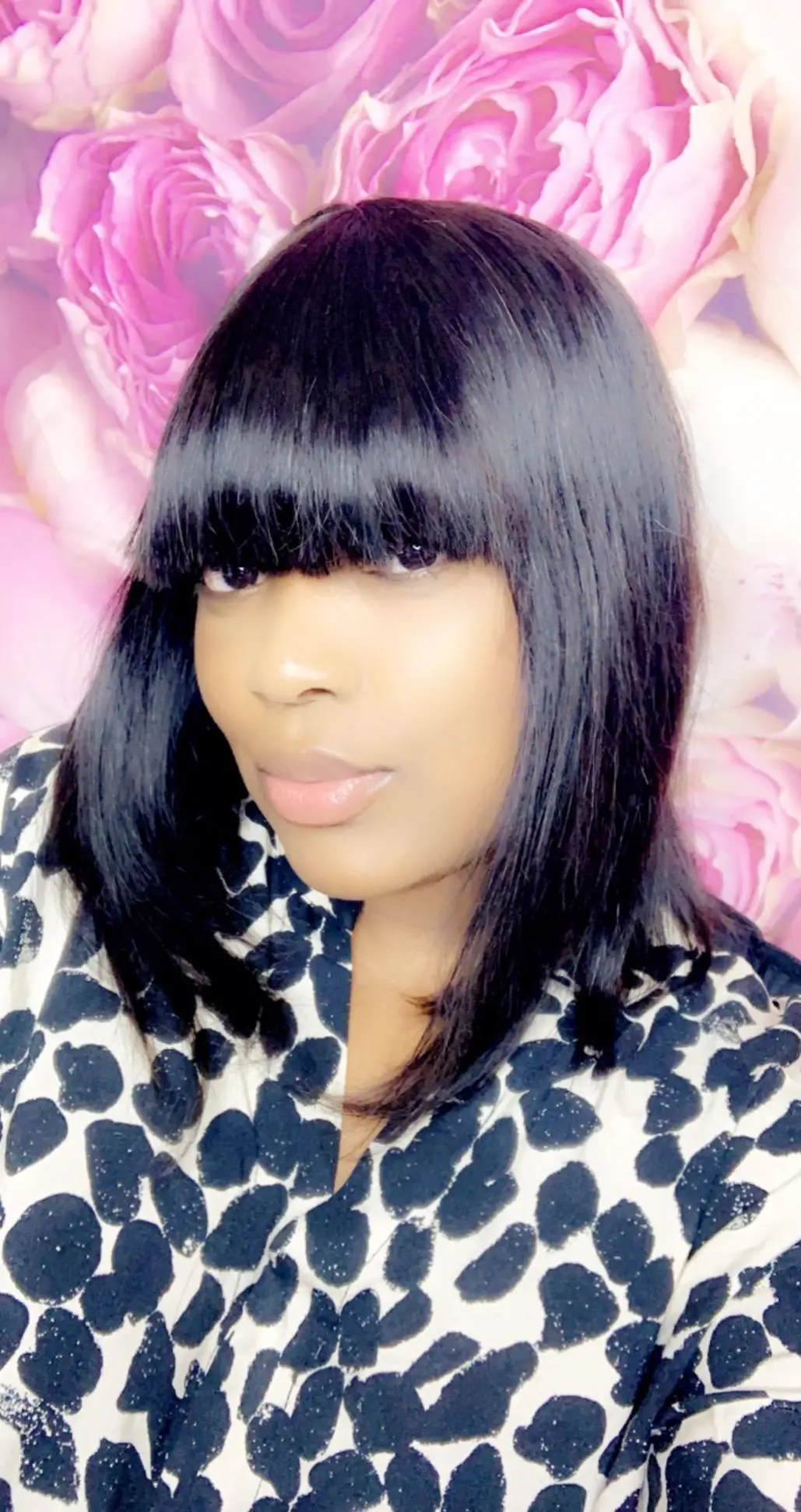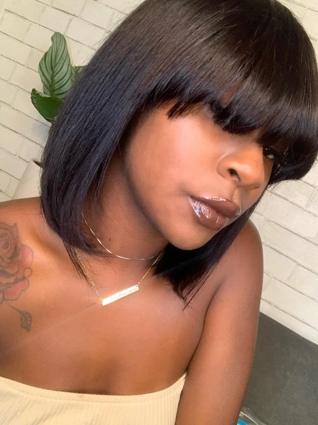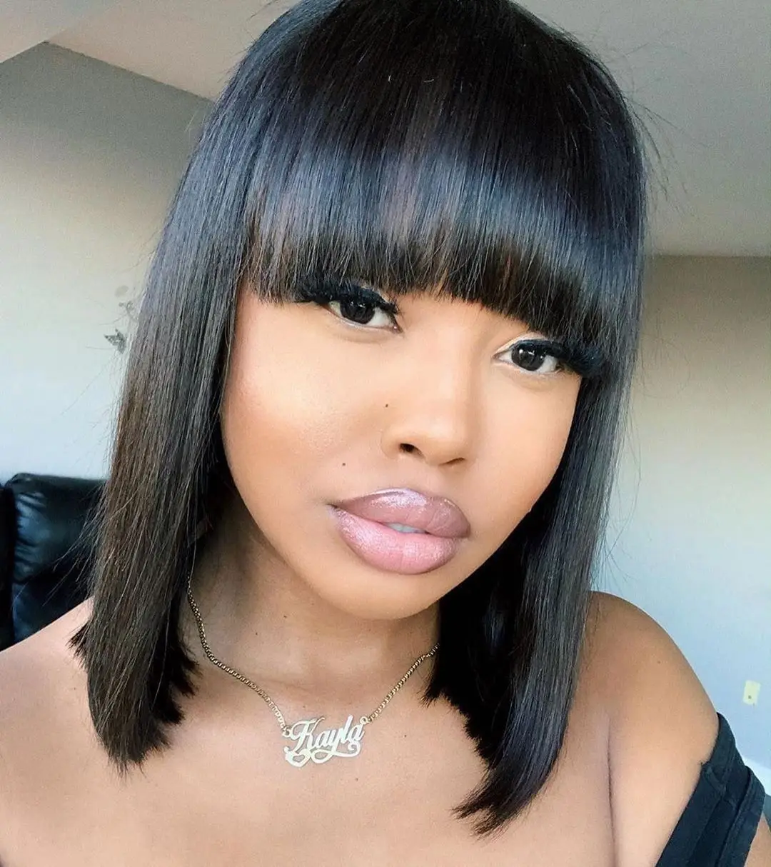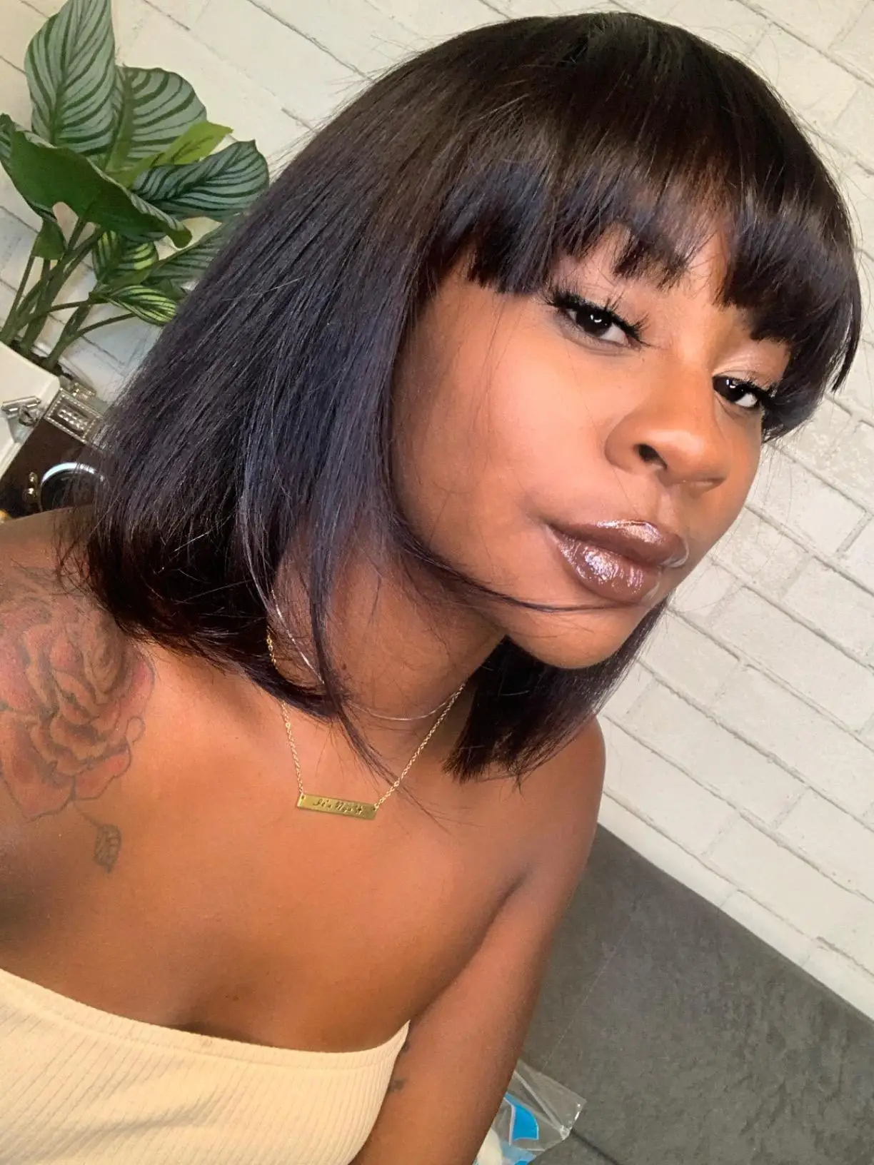 Прямой парик с челкой, Боб, парик из человеческих волос для женщин, бразильские волосы без клея, полностью машинная работа, челки с человеческими волосами