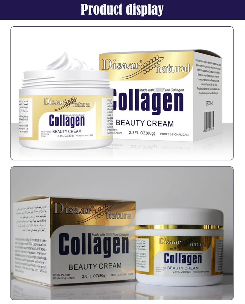 Название: отбеливание коллагена, антивозрастной увлажняющий крем (без коробки)Спецификация: 80 гЭффект: высококачественный антивозрастной крем с 100% чистым коллагеном. Коллагеновый крем для красоты обеспечивает эластичность кожи, помогая коже быть здоровой и молодой.