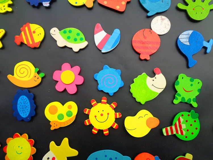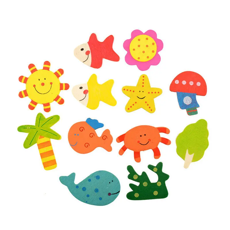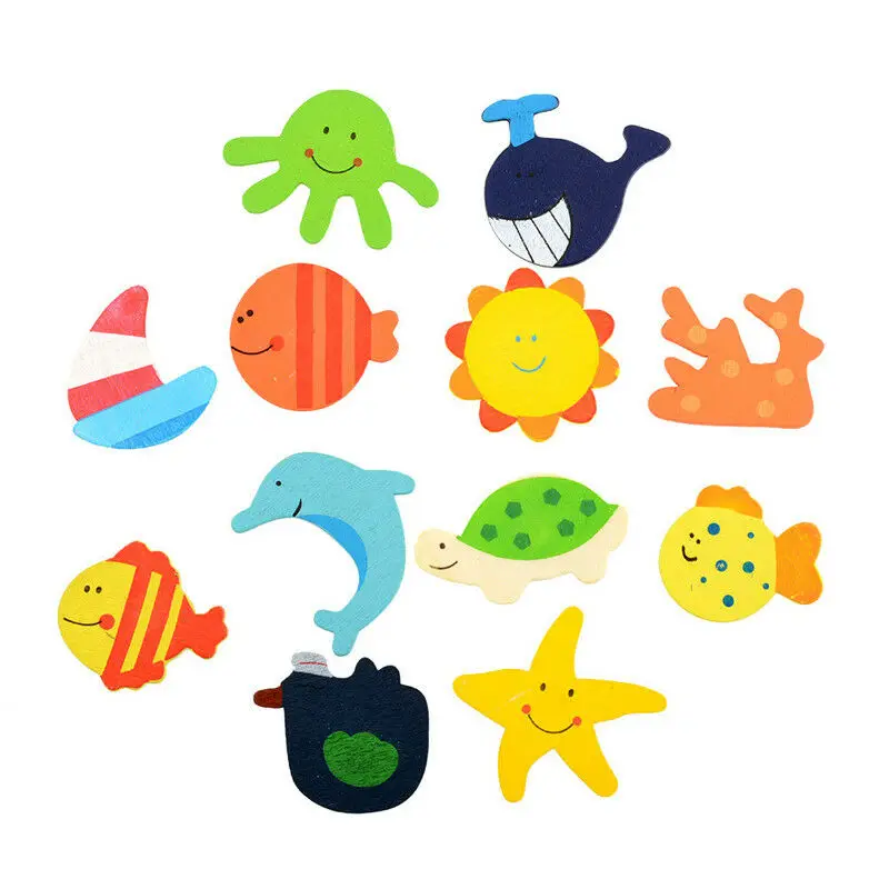 Детский развивающий, 12 шт забавных и красочных мультяшных деревянных наклеек на холодильник.