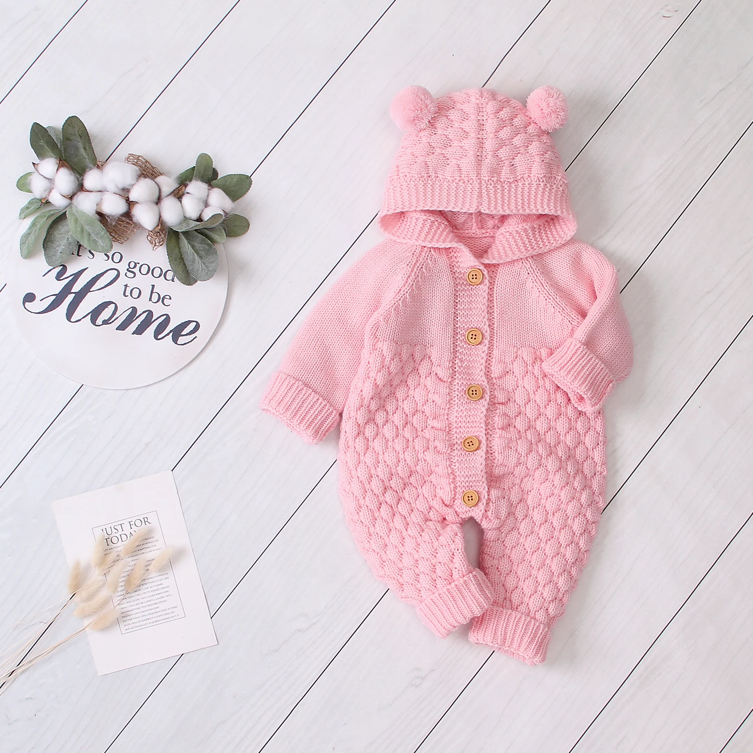Комбинезон детский вязаный с капюшоном, на возраст 0-24 м
