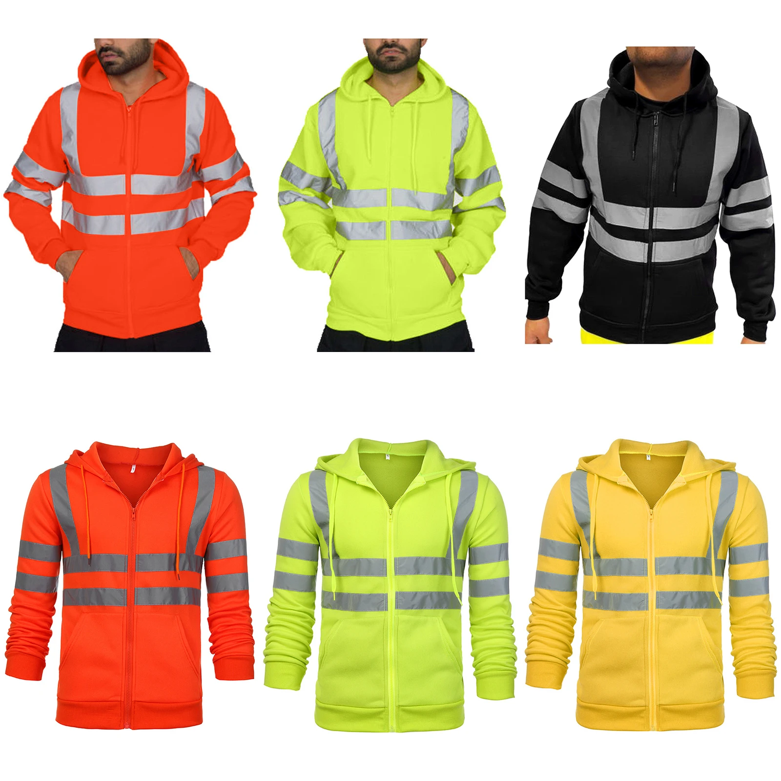 Reflective striped work jacket uniform winter cotton zipper hoodies