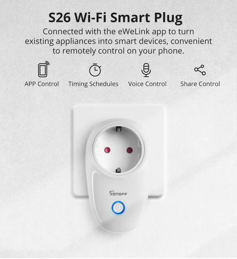 Умная розетка Itead Sonoff S26R2, wi-fi переключатель, работает с приложением Alexa Google Home eWelink, дистанционное управление через приложение, таймер питания