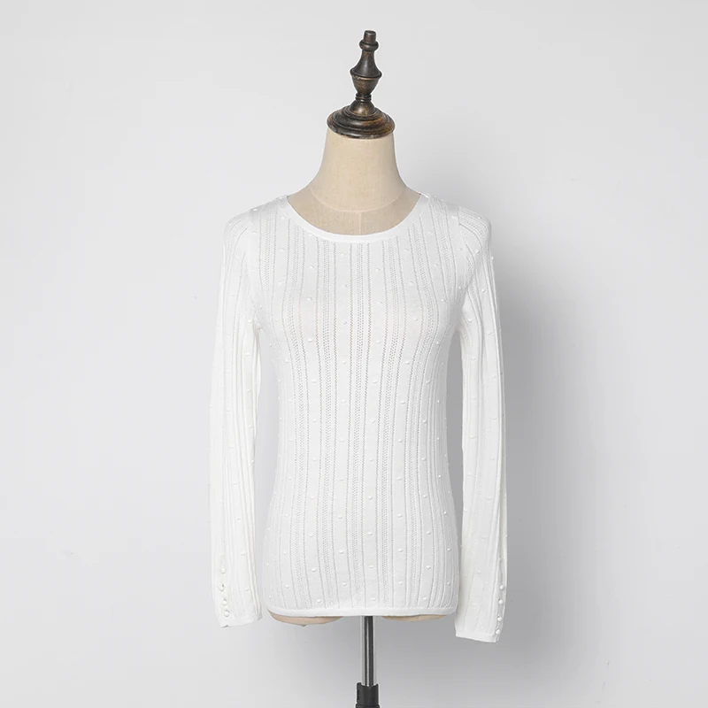 Женский трикотажный пуловер с длинным рукавом, круглым вырезом и пу...