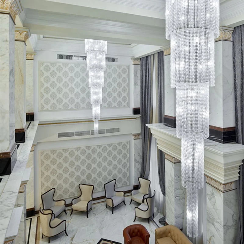 Длинная хрустальная люстра, современная лампа для лестницы, дуплексное здание, большая лампа для гостиной