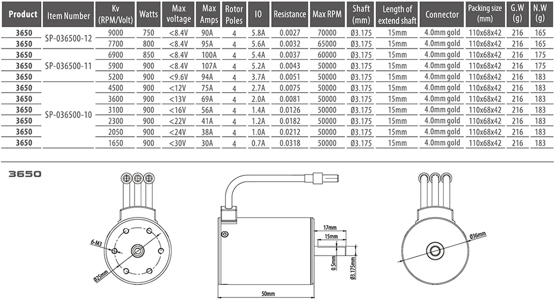 KV(RPM/Вольт): 2300KV 3100KV 3600KV 4500KV 5200KV 5900KV 6900KV 7700KVOptional