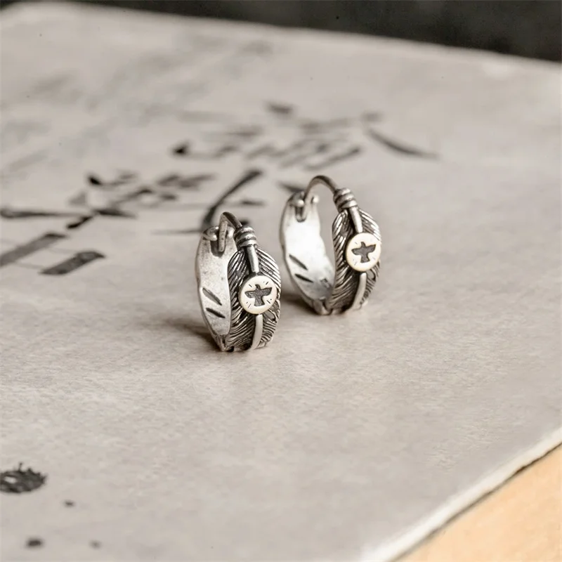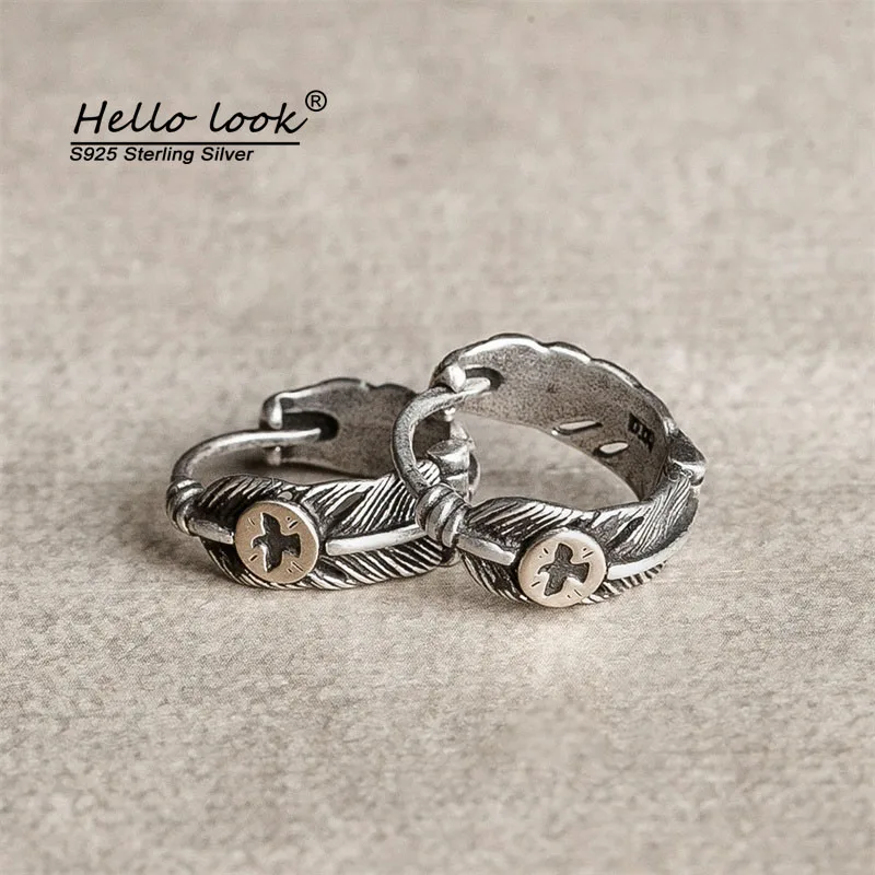 Серьги HelloLook 925 пробы серебряные с твердым латунным летающим орлом, серьги с пером для мужчин, женщин, мужчин, модные вечерние государственные Мужские t