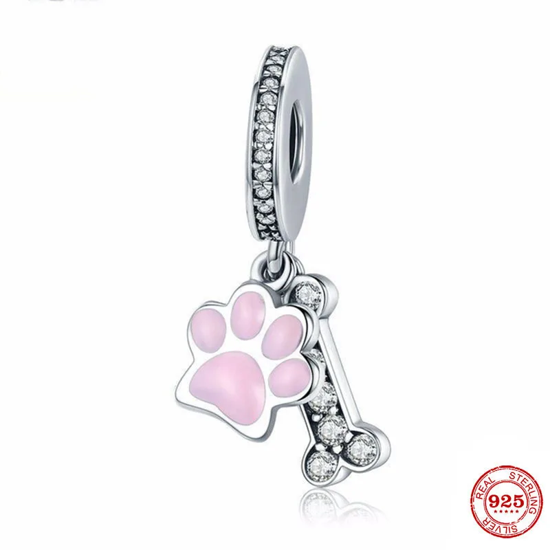 Серебряные бусины 925 пробы собака след кости на крючках, очаровате...