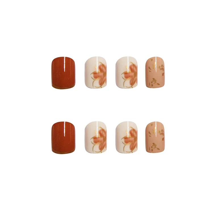 GAM-BELLE 24 шт красный цветочный узор поддельные ногти блестящая ф...