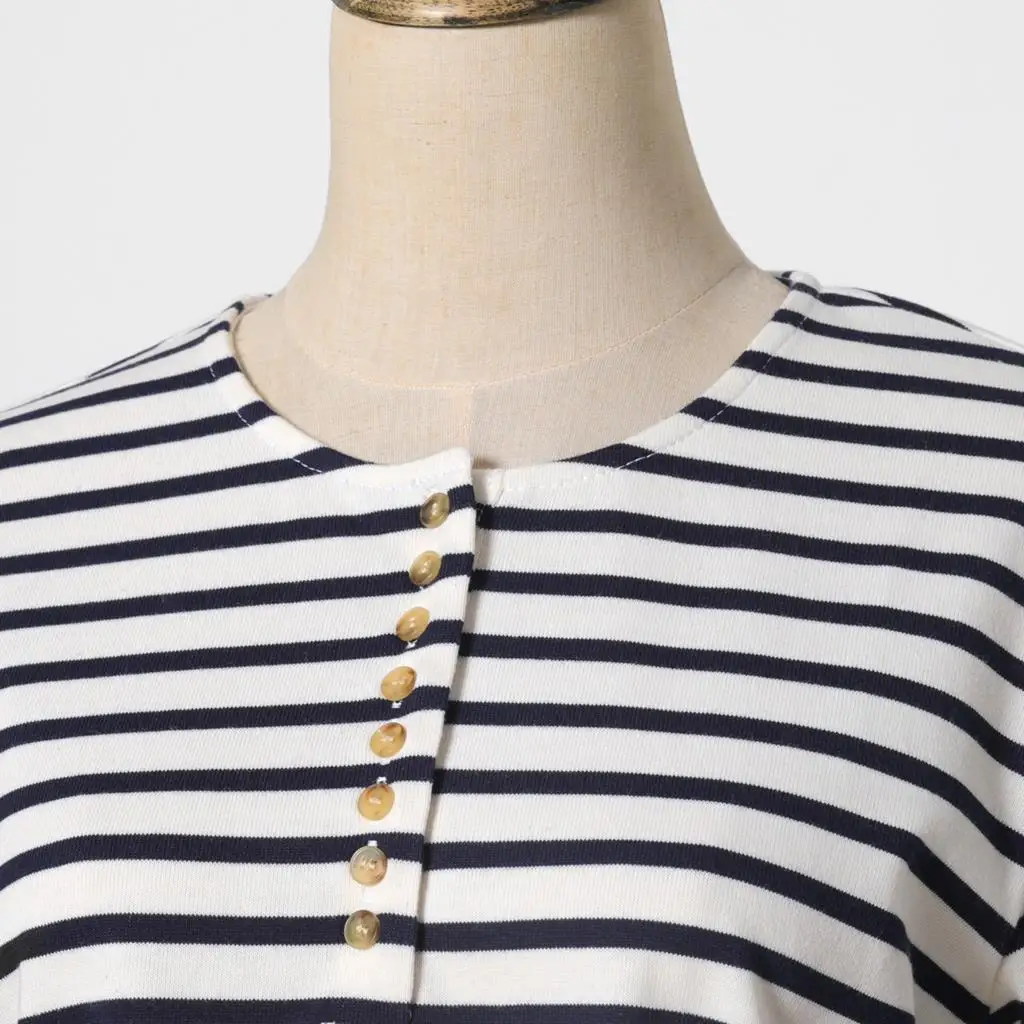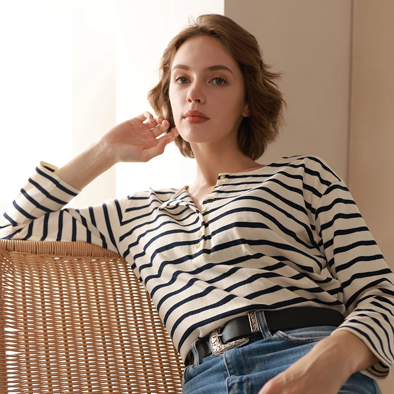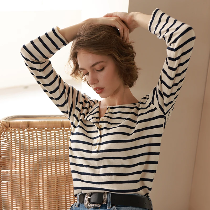 Футболка женская с V-образным вырезом, на пуговицах, с длинным рукавом