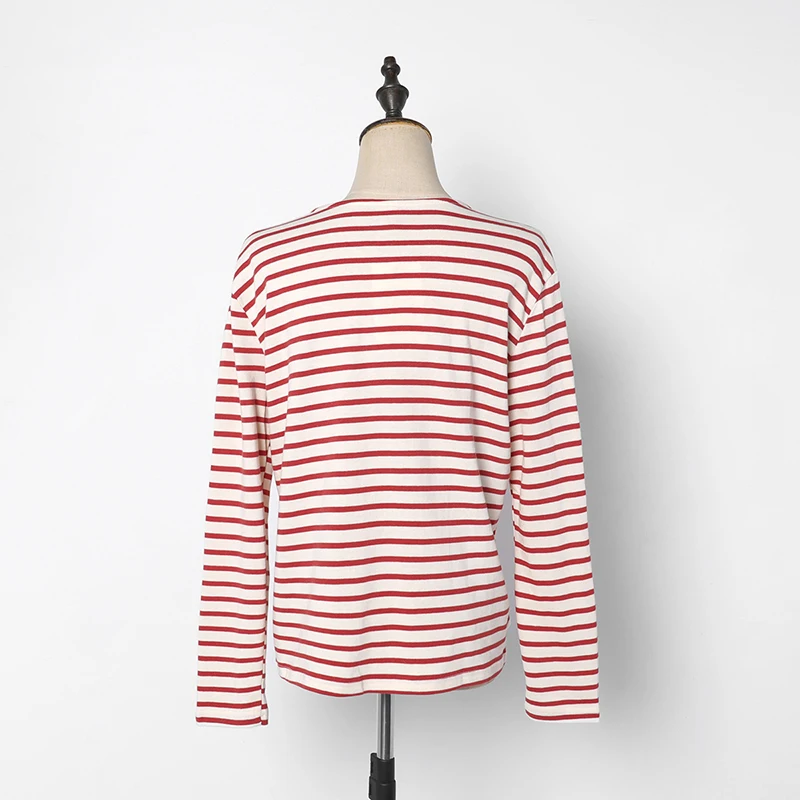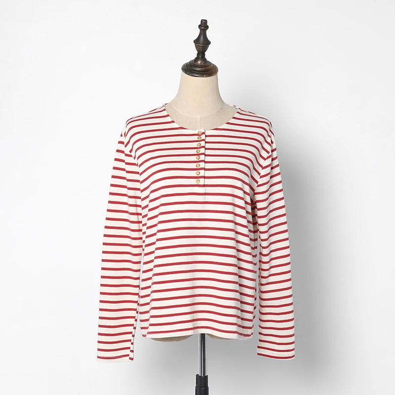 Женская футболка в красную полоску, с круглым вырезом и длинным рук...