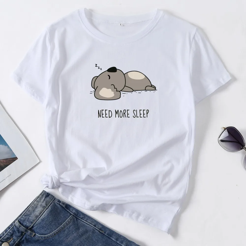 Забавная женская футболка с коалой Need More Sleep, футболки с короткими рукавами, женские летние топы хлопок, женская футболка с графическим принтом в стиле Харадзюку