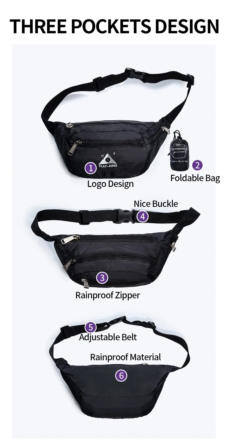 Водонепроницаемая Складная поясная сумка PLAYKING для мужчин и женщин, спортивные аксессуары для бега, тренажерного зала, фитнеса