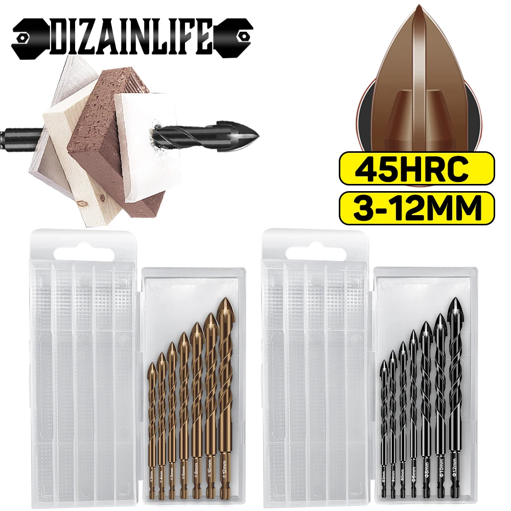 Набор сверл с шестигранным хвостовиком для плитки, комплект треугольных бит из твердого сплава для открывания керамических, стеклянных, бетонных отверстий, кирпичей, деревообрабатывающих инструментов