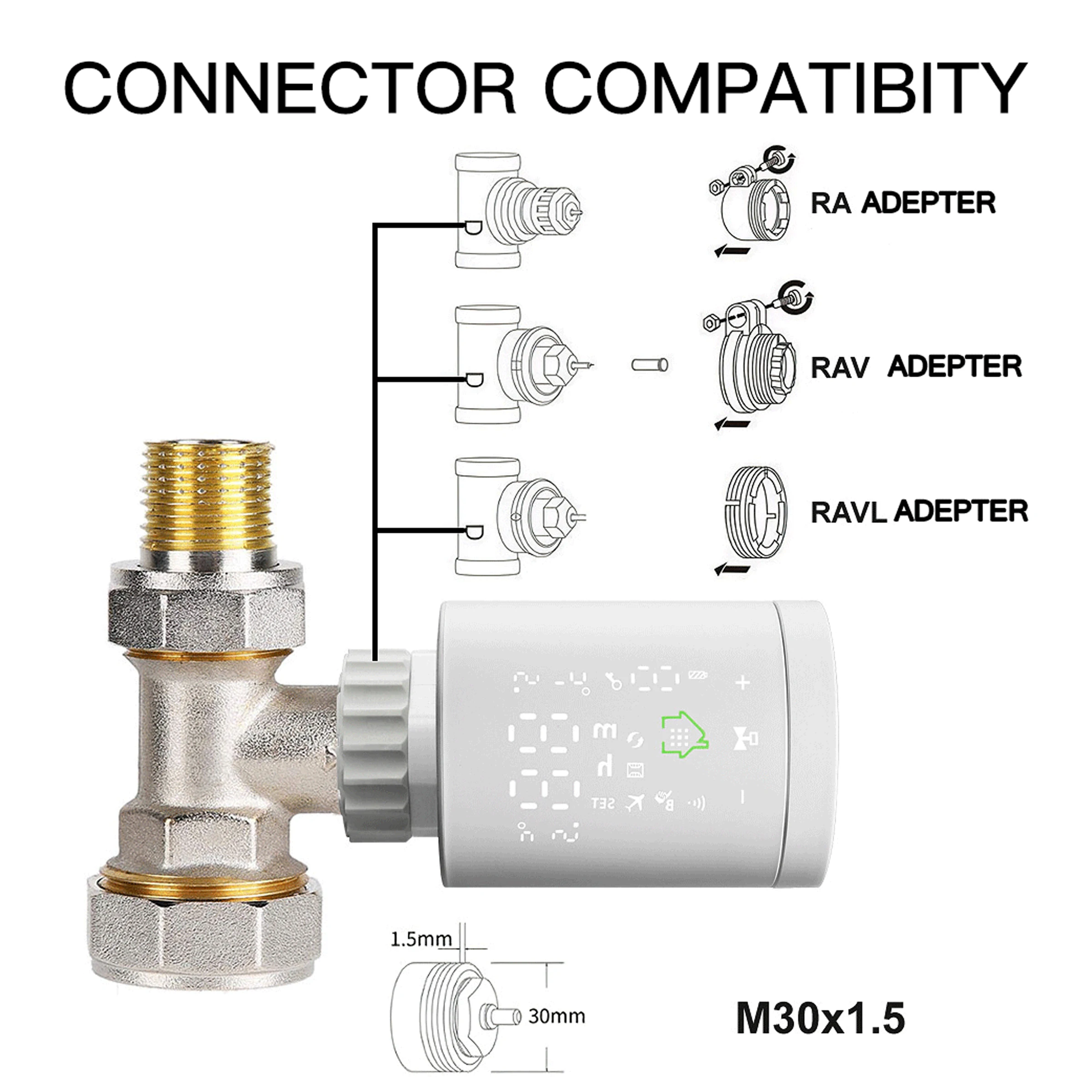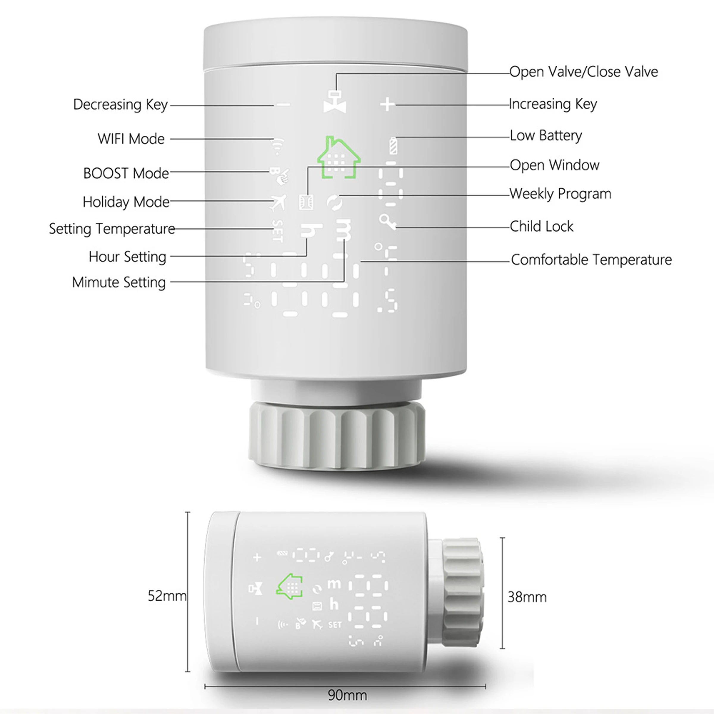 1. Термостат привода радиатора Smart Tuya ZigBee: Новый мини-дизайн с простым и четким ЖК-дисплеем на корпусе, термостат радиатора с ЖК-экраном и двумя секциями батареек AA, это специальный клапан, используемый совместно с радиатором отопления. Искусственная установка температуры в помещении, В основном используется в системе отопления пола для управления закрытием и открытием трубы.