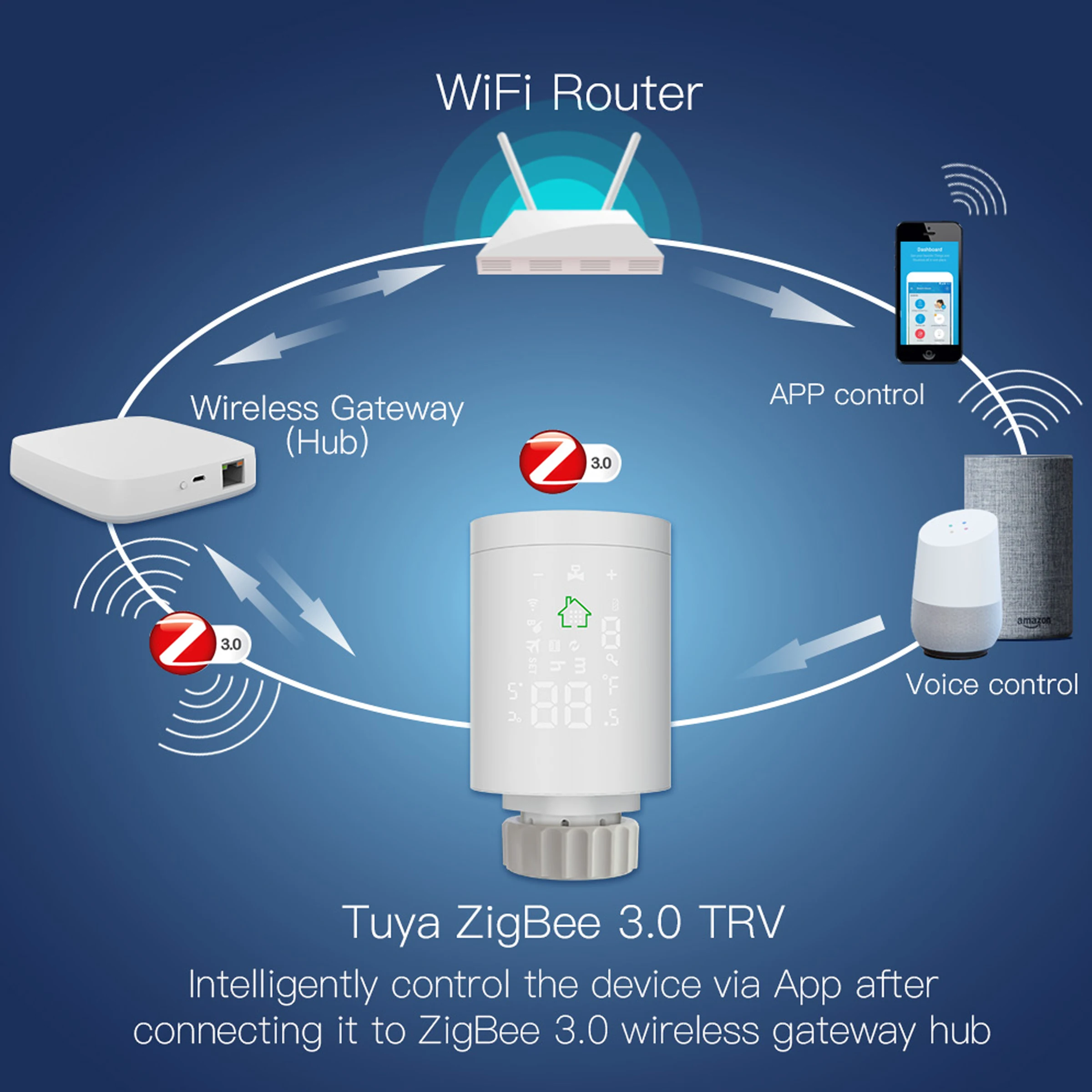 Привод радиатора Tuya Smart ZigBee, программируемый термостатический клапан радиатора TRV, контроллер температуры, поддержка Alexa