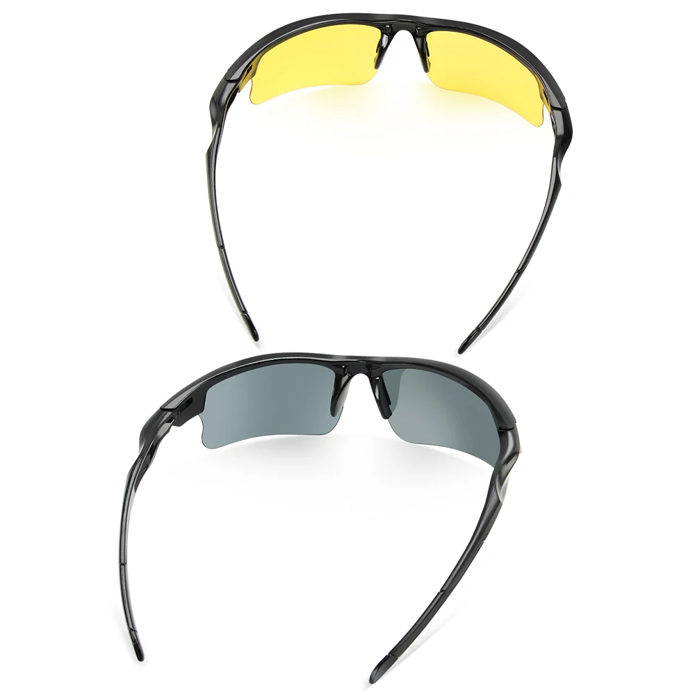 100% новые и высококачественные. Носите черные линзы в течение дня, чтобы устранить блики автомобильного стекла, анти-снежные слепые, уменьшить стимуляцию глаз. Ношение желтой линзы в ночное время уменьшает количество видимости, вызванное дальним светом и ксеноновыми фарами. Характеристики: