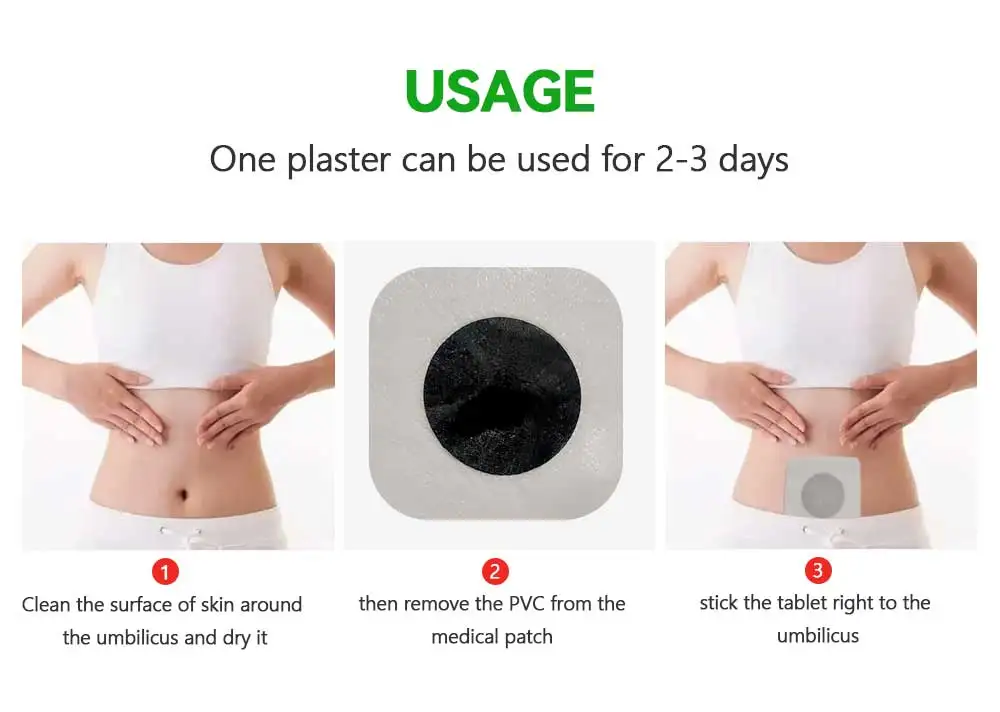 2. Наклейте штукатурку наСередина пупка. Одна штукатурка может держать для2-3Дней.