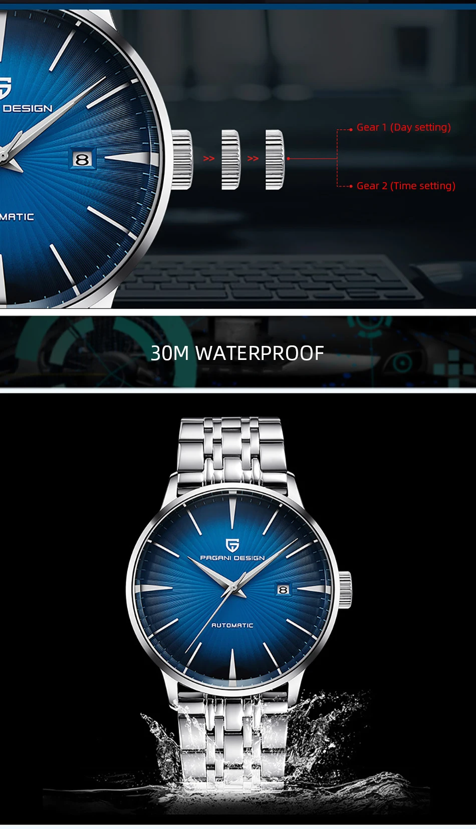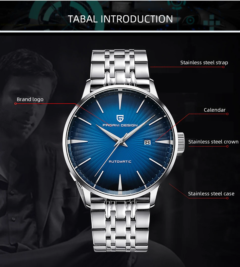 Часы PAGANI Design Мужские механические, модные повседневные водоне...