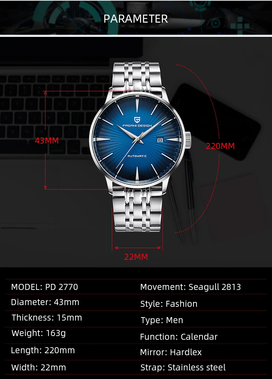 Часы PAGANI Design 2770 Мужские механические, Классические роскошны...
