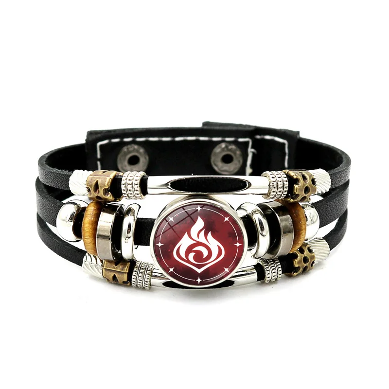 Светящийся ударный кожаный браслет Genshin, браслет с отверстиями глаза Бога, воды, ветра, гром, огнем, скалой, льдом, застежкой-кнопкой, браслеты, ювелирные изделия, подарок