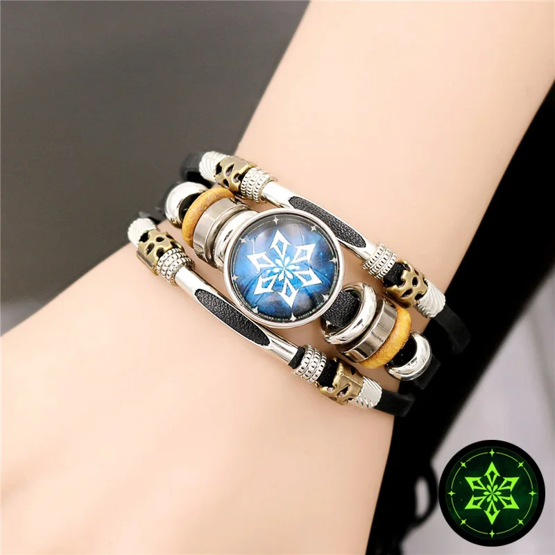 Браслет Genshin Impact, мужской светящийся кожаный браслет в стиле ...