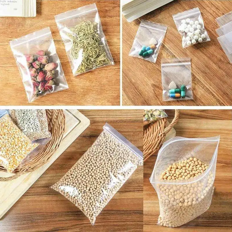 100 шт закрываемые мешки с замком на молнии самозакрывающиеся прозрачные пластиковые полиэтиленовые пакеты упаковка для хранения продуктов Reclosable Вакуумный свежий мешок K9