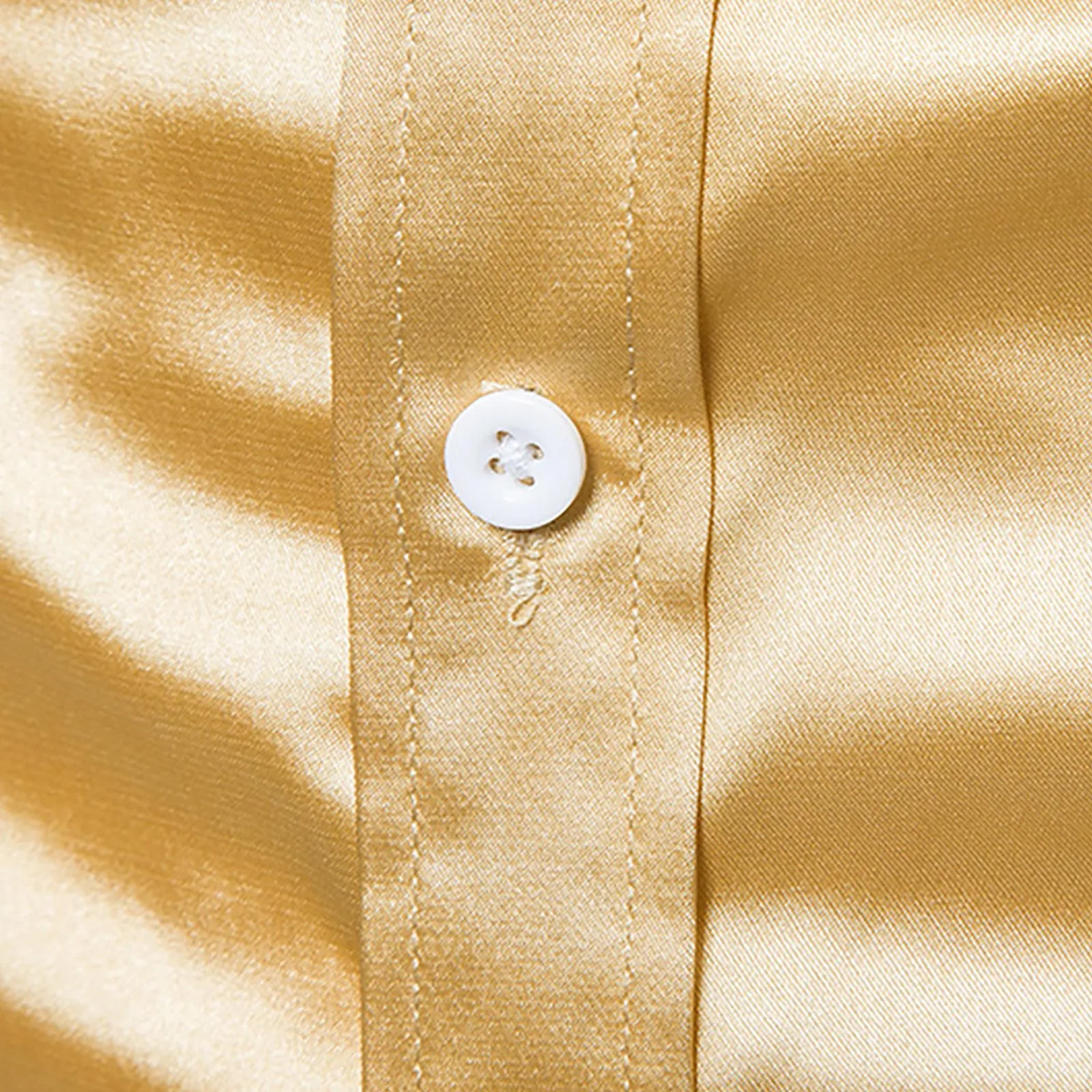Мужская атласная шелковая рубашка, облегающая однотонная Повседневная рубашка с длинными рукавами, отложным воротником, деловая одежда для отдыха и вечеринок