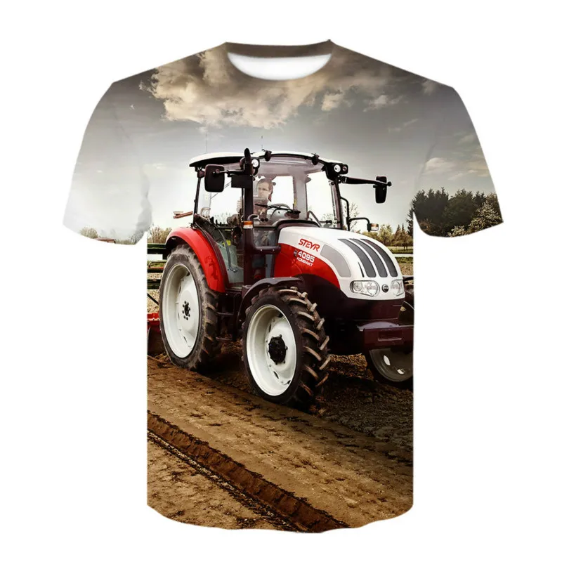 Экскаватор трактор 3D печатная Мужская модная футболка с коротким рукавом с О-образным вырезом Футболка эстетичного дизайна были сделаны 2021 Новинка; Лидер продаж