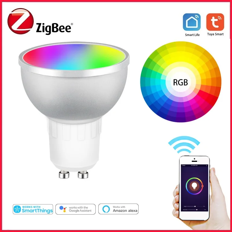 Умная светодиодная лампочка Tuya Zigbee 3,0, 5 Вт, лампа RGBCW, дистанционное управление через приложение, поддержка Alexa, Google Home