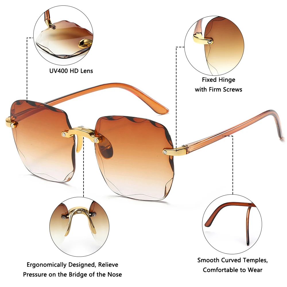 Летние квадратные женские солнцезащитные очки без оправы, солнцезащитные очки с градиентом для рыбалки, походов, винтажные Простые Модные затемненные очки для вождения