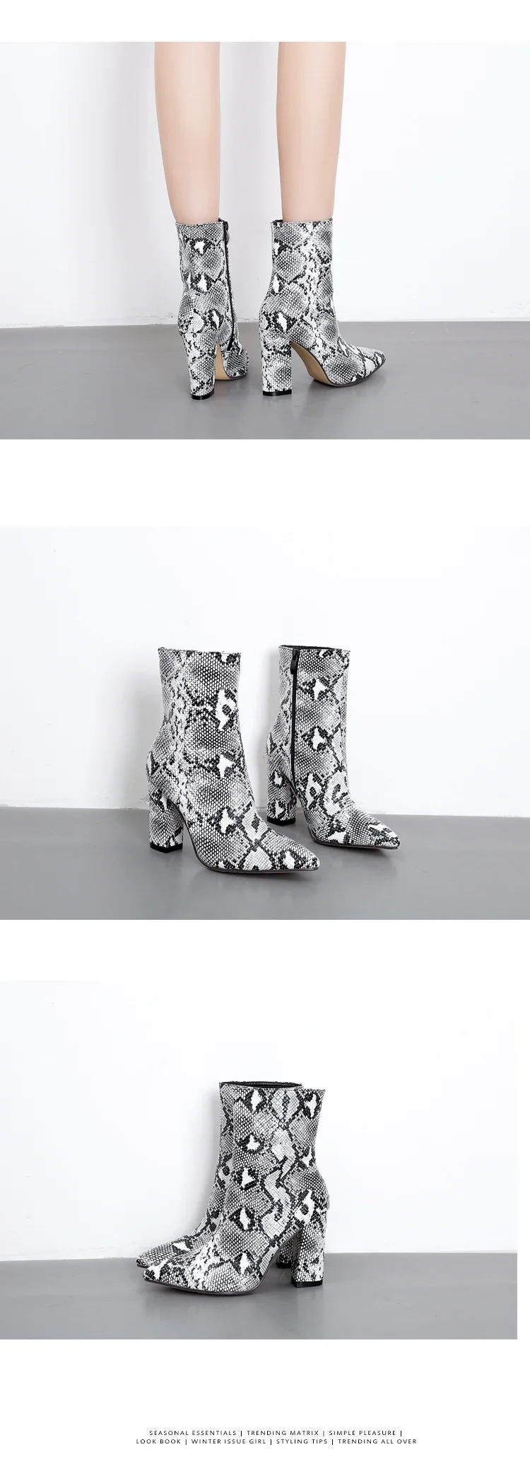 Женские ботильоны с острым носком, на высоком массивном каблуке