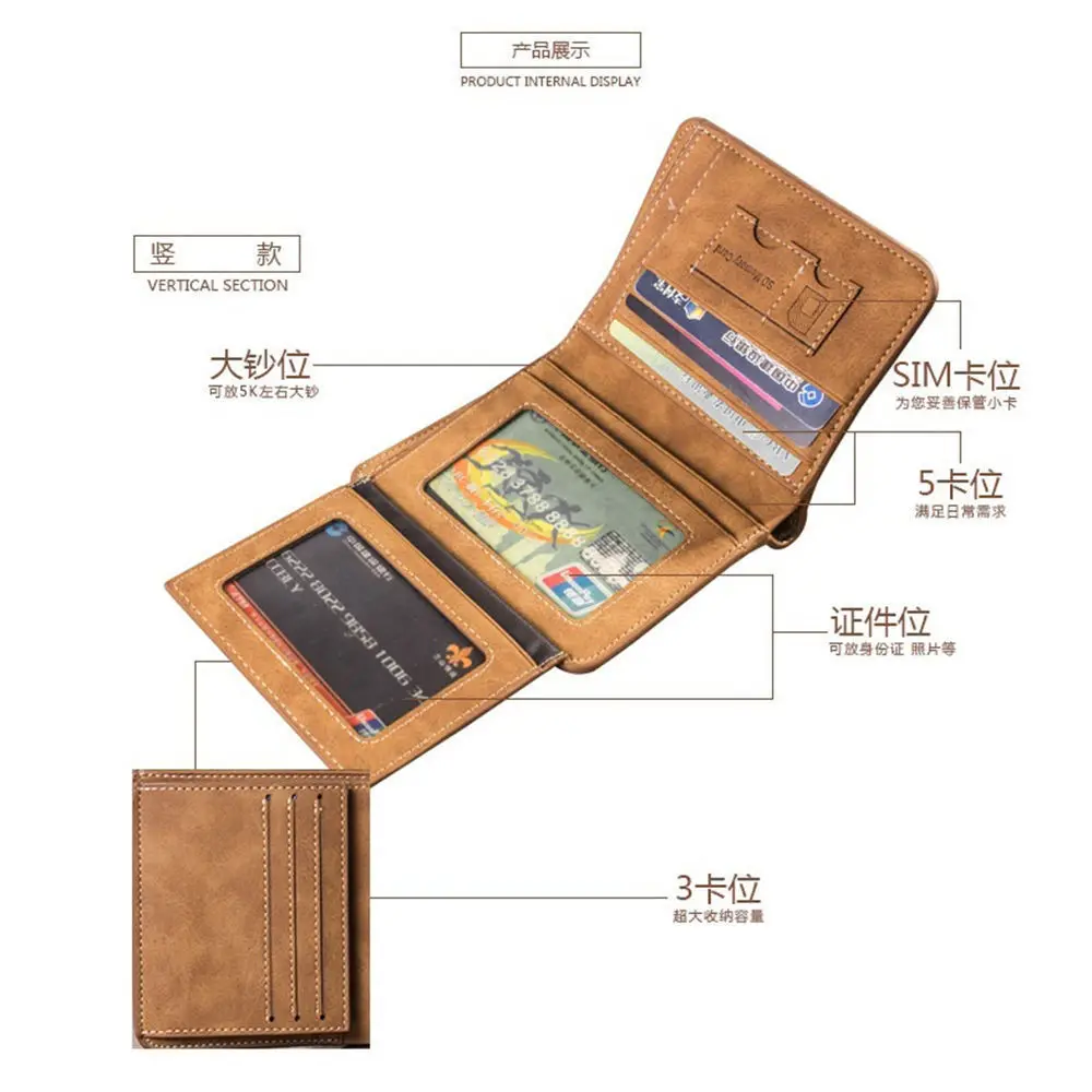 Мужской кошелек тройного сложения, кошелек из искусственной кожи, держатель для кредитных карт, однотонный винтажный кошелек, клатч, матовый натуральный модный кошелек для карт и наличных