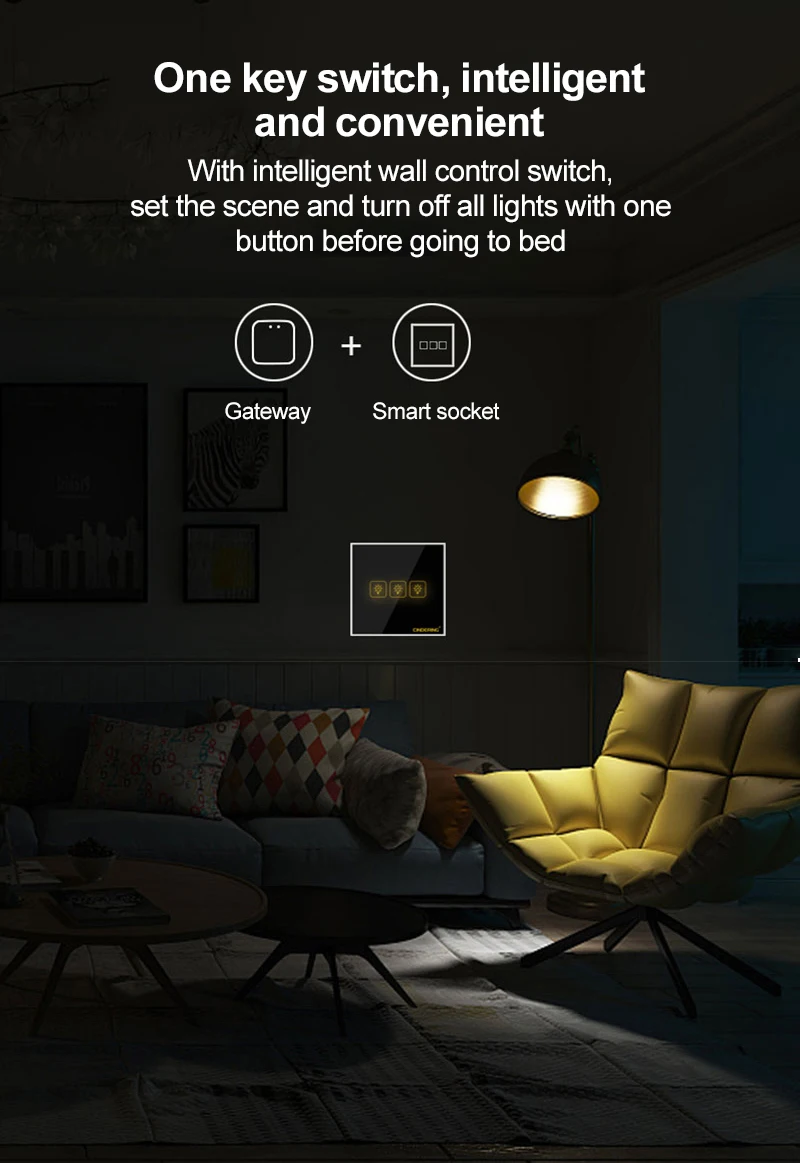 Шлюз + умная розетка: однокнопочный переключатель, умный и удобный, с умным настенным переключателем управления, установите сцену, одна кнопка Выключите все огни перед сном