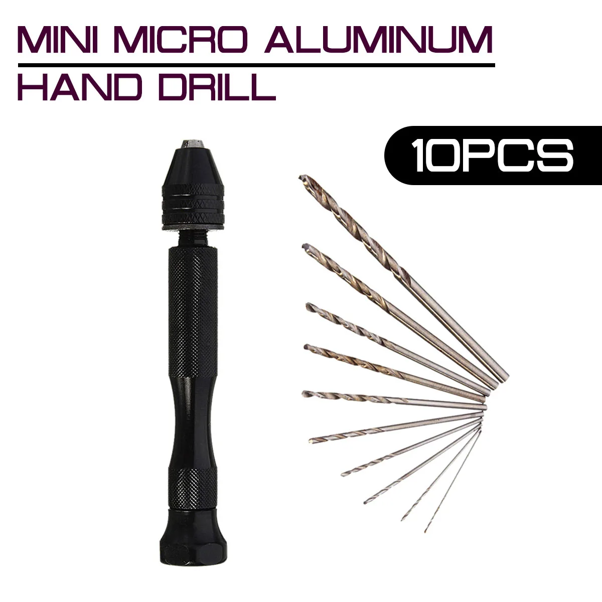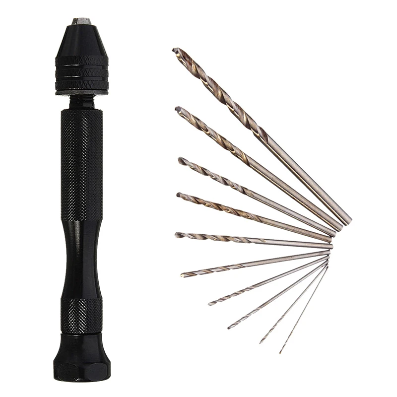 Мини Микро алюминиевая ручная дрель с бесключевым патроном + 10 поворотных сверл вращающиеся инструменты Особенности-Для алюминиевых ручных сверл хобби-Мини Деревянный ручной сверлильный патрон для ювелирного инструмента микро-сверло-Точный, точный и эффективный-Подходит для дерева, пластика, резины, модели и других материалов для сверления отверстий.-Не подходит для стали, железа, камня, таких твердых вещей-Идеально подходит для бурения древесины, Цзинь Ган, липы, рога, янтарного, оливкового, грецкого ореха, пластика и других материалов. Технические характеристикиМатериал: алюминиевый сплавЦвет: черныйДиапазон зажима патрона: 0,3-3,2 ммВысокая точность, можно обрезать 0,3-3,2 мм сверло. 10 шт. мини сверлаМатериал: Высокоскоростная стальРазмер: 0,5 0,6 0,7 0,8 0,9 1,0 1,2 1,5 1,8 2,0 ммПодходит для печатных плат, ремесел, ювелирных изделий, часовМини микро сверло набор Pcb хоббиМикро быстрорежущее стальное сверло с прямым хвостовикомМини сверла, электрические сверла электроинструменты Посылка в комплектеРучная дрель-1 шт. + сверла-10 шт.