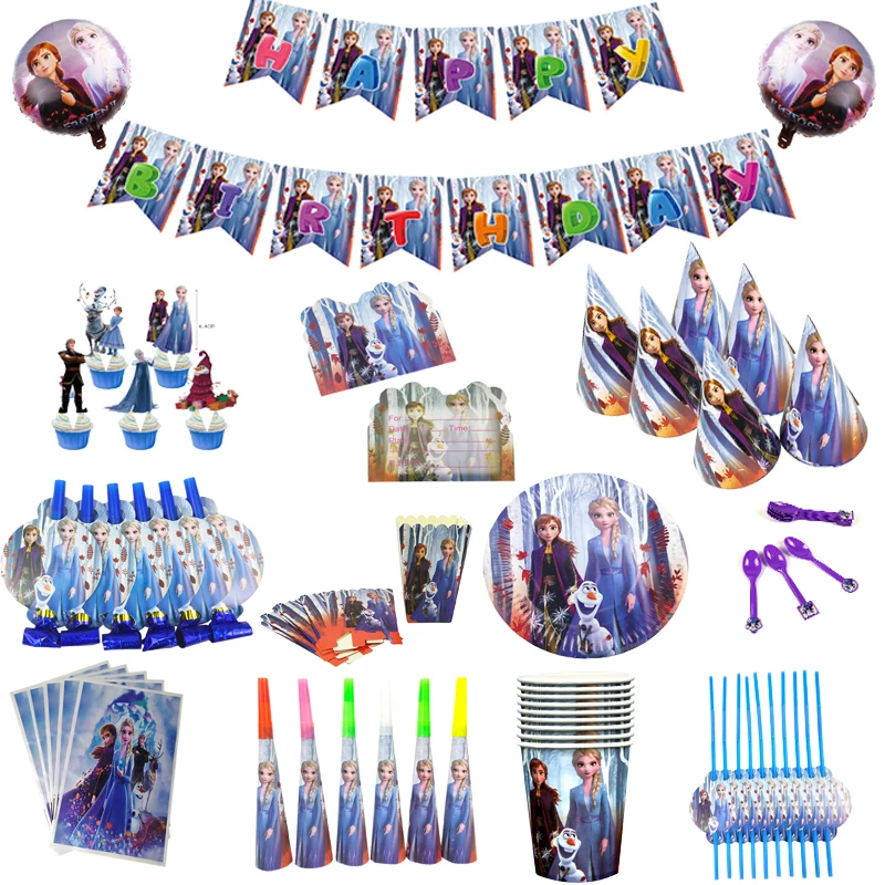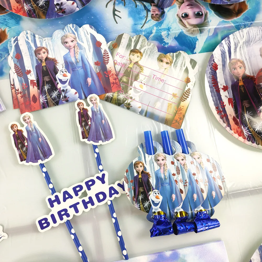 Мультфильм Дисней замороженные 2 темы вечерние одноразовые столовые приборы набор бумажных стаканчиков скатерть девушки день рождения вечерние украшения детский душ