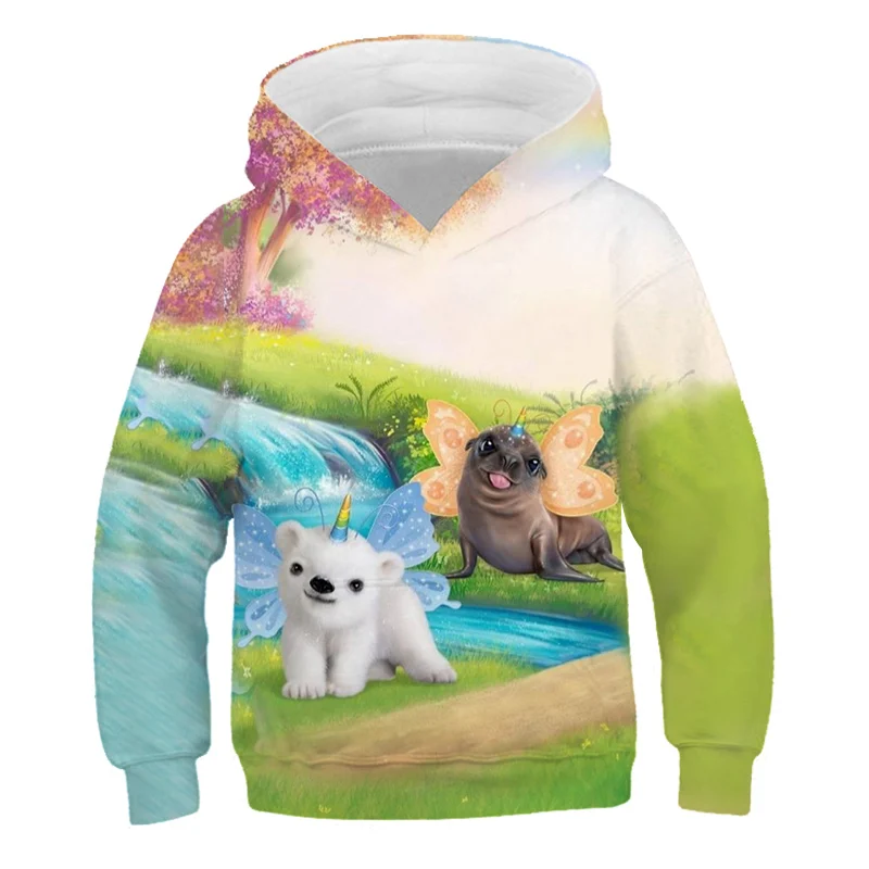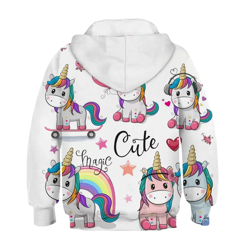 2021 летняя детская одежда, свитшоты для девочек с худи, свитер с капюшоном в виде единорога для детей, верхняя одежда, длинные топы, милый рисунок лошади