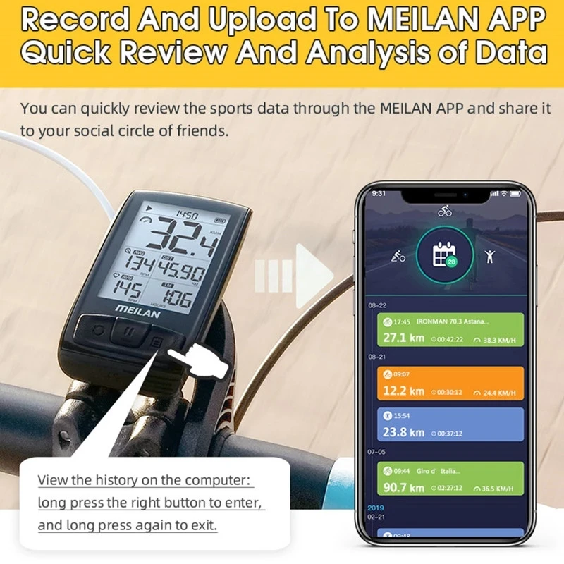 Meilan M1 M4 беспроводной Bluetooth4.0 велосипедный компьютер, одометр, Датчик скорости/частоты вращения педалей + монитор сердечного ритма на груди, велосипедный компьютер