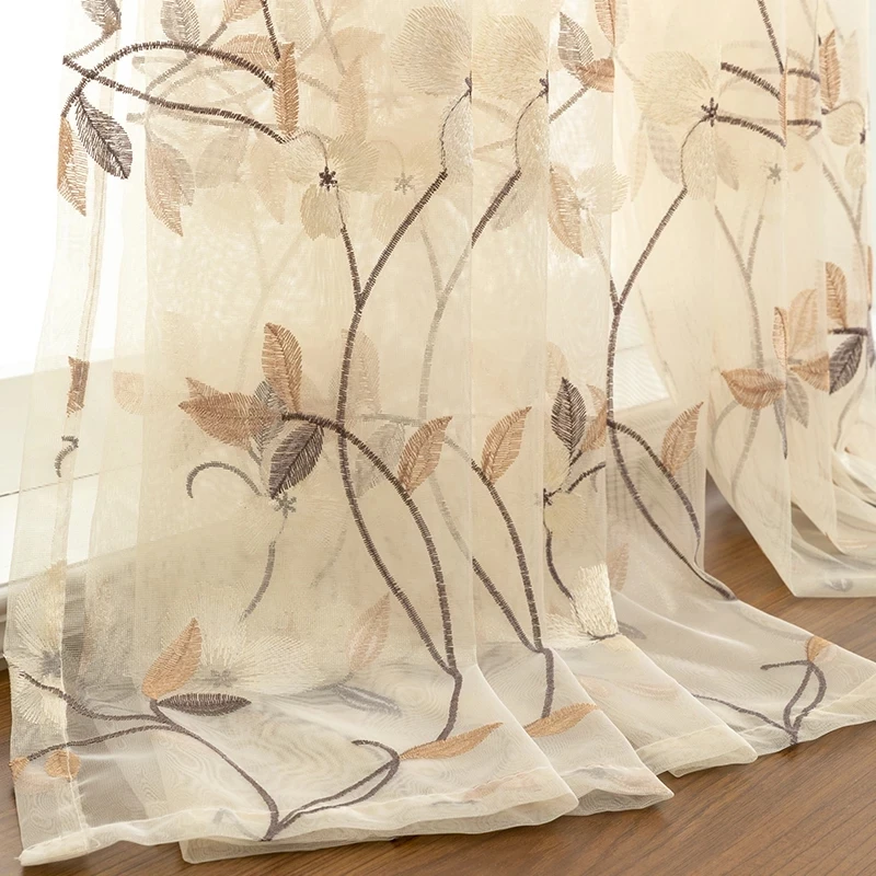 Занавеска из тюля для гостиной, спальни, кухни, с вышивкой листьев