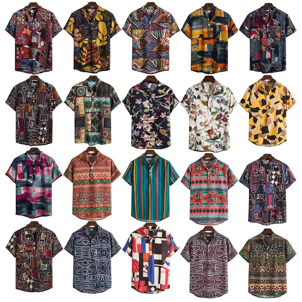 Мужская рубашка, Новинка лета 2021, модная повседневная гавайская рубашка в стиле Харадзюку, мужские льняные пляжные рубашки с принтом и короткими рукавами, одежда