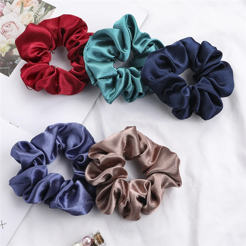 Новые резинки однотонные блестящие ткани нормальный размер оптовая продажа резинки для волос эластичные резинки для женщин аксессуары