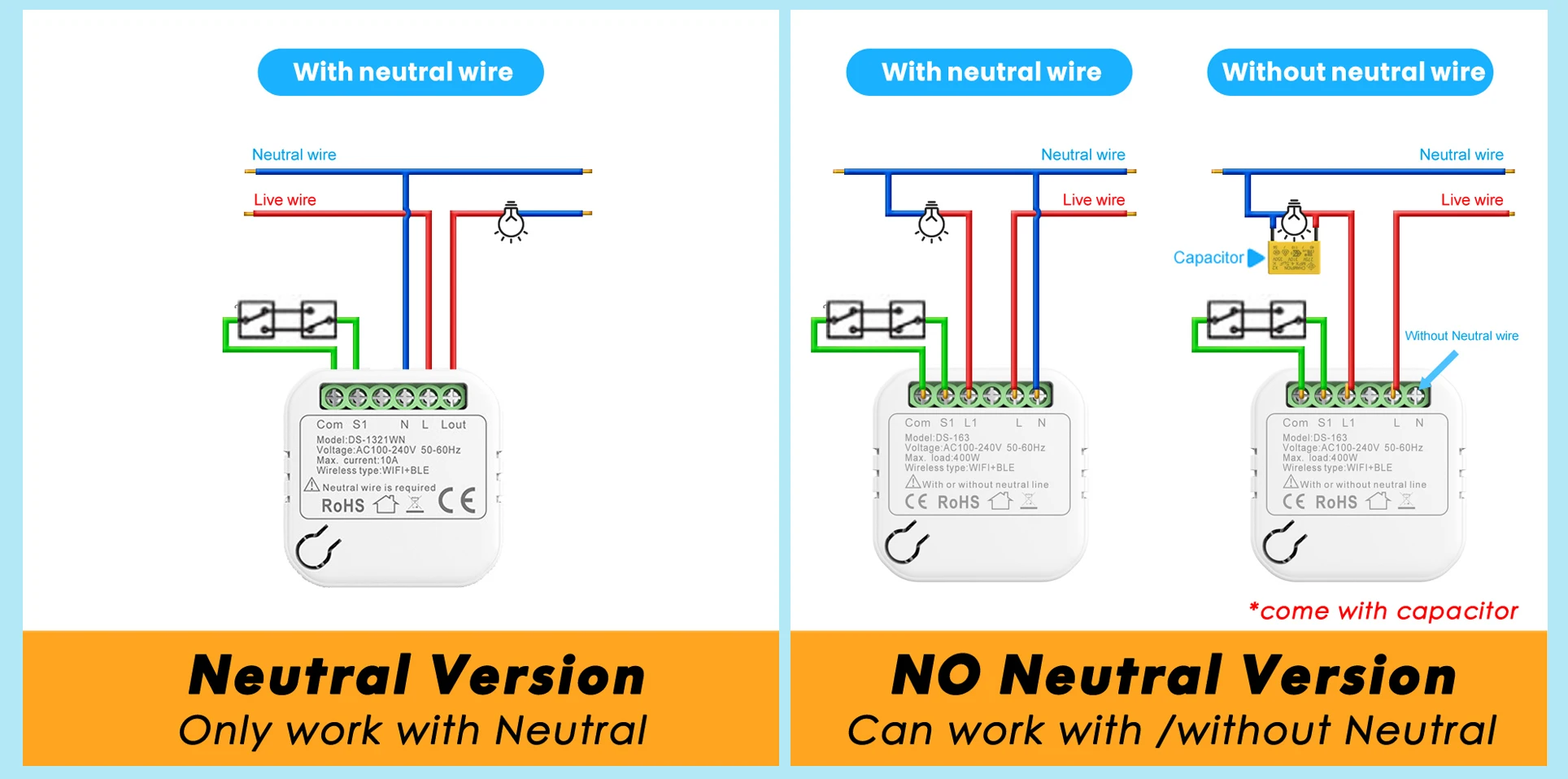 Нет нейтральной версии: может работать с нейтральным проводом или без него. Конденсатор входит в посылка.