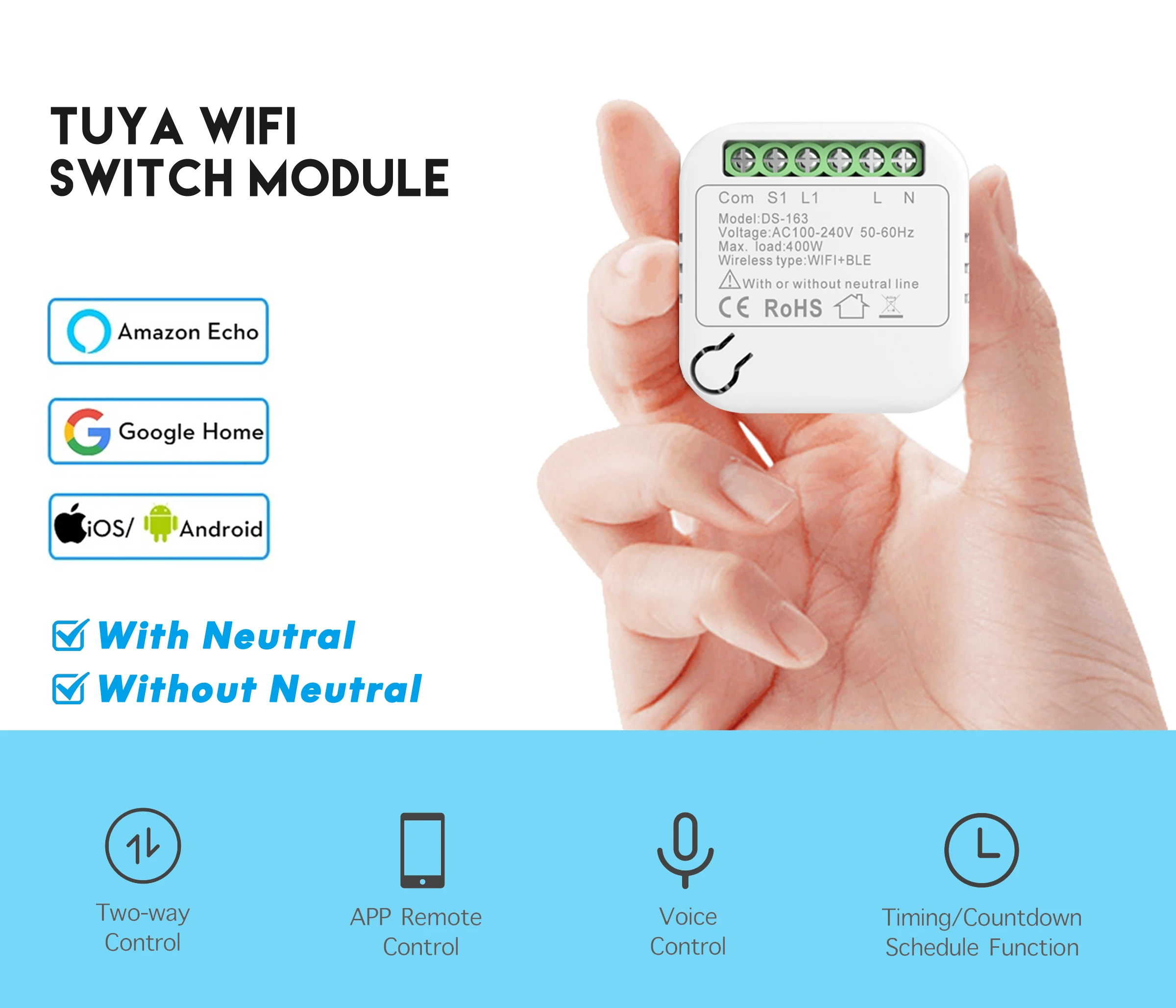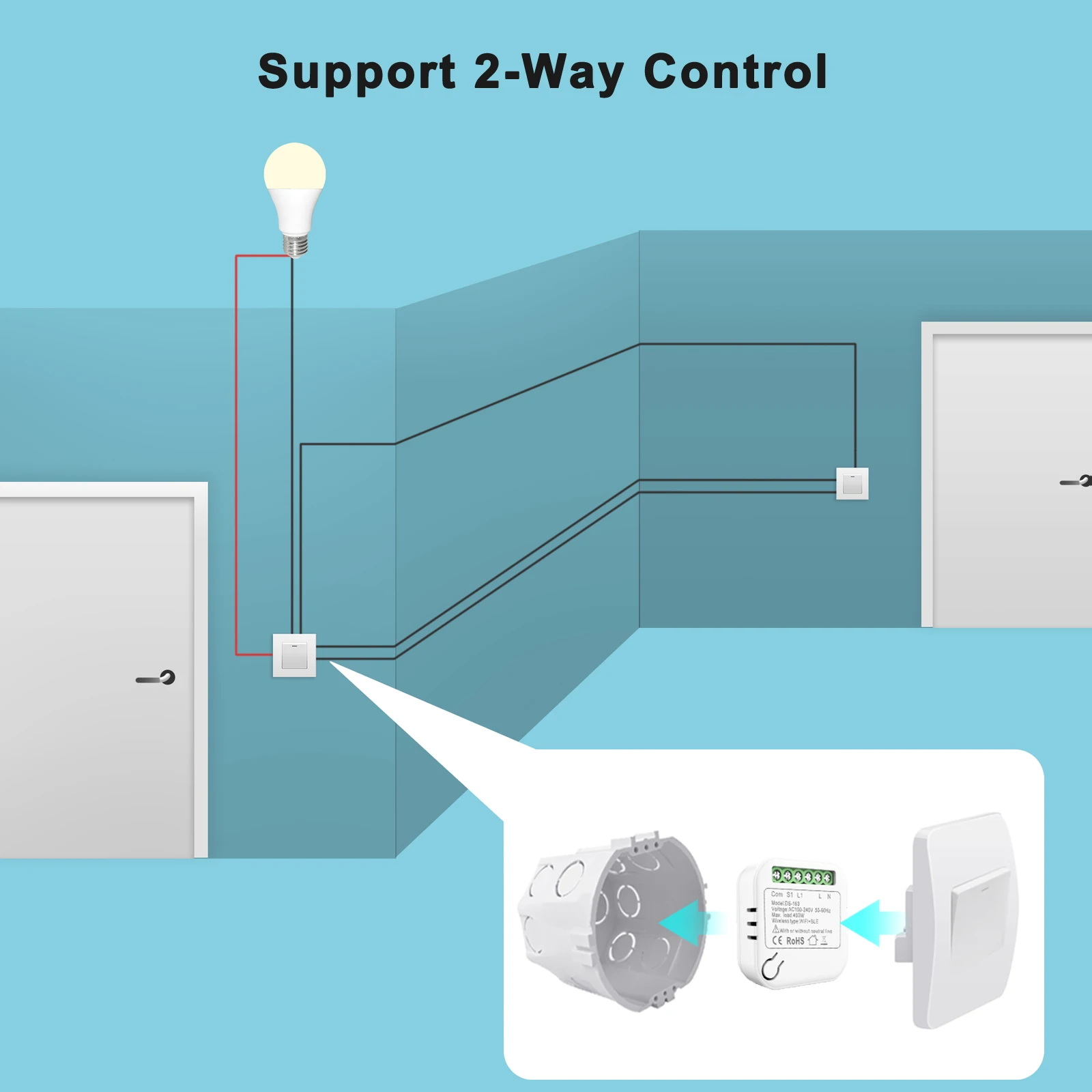 Умный модуль переключателя Wi-Fi Tuya, двухсторонний выключатель света без нейтрального провода, с несколькими пультами управления, работает с приложением Smart Life с Alexa Google Home
