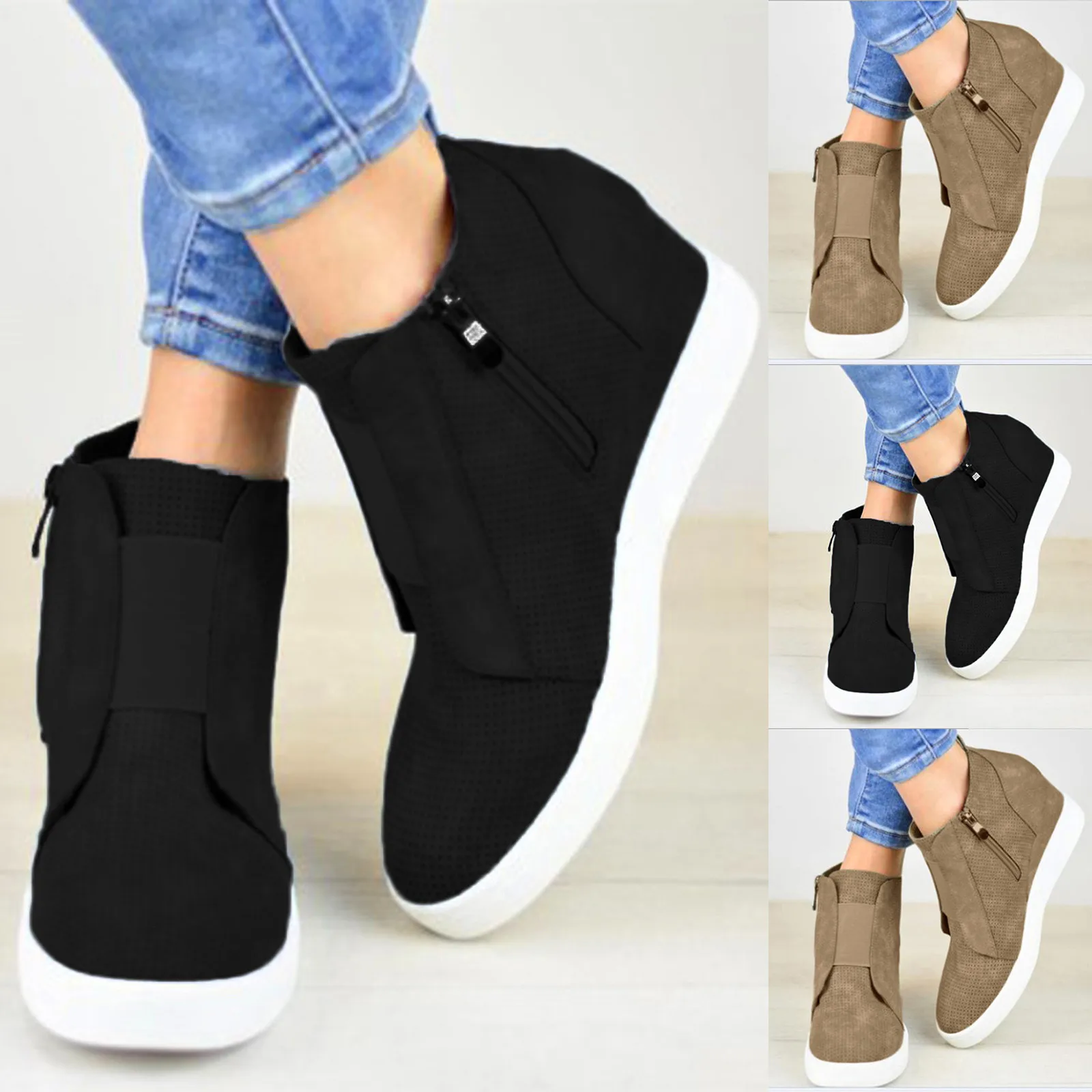 Весенние женские ботинки из искусственной замши, ботинки на платформе, обувь на скрытом каблуке, высокие кроссовки, повседневная обувь, женские ботильоны