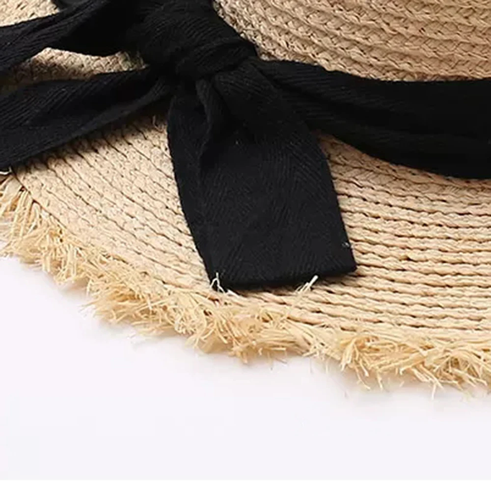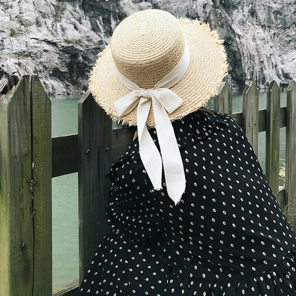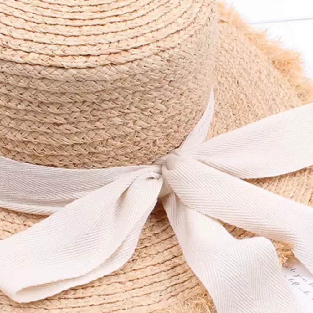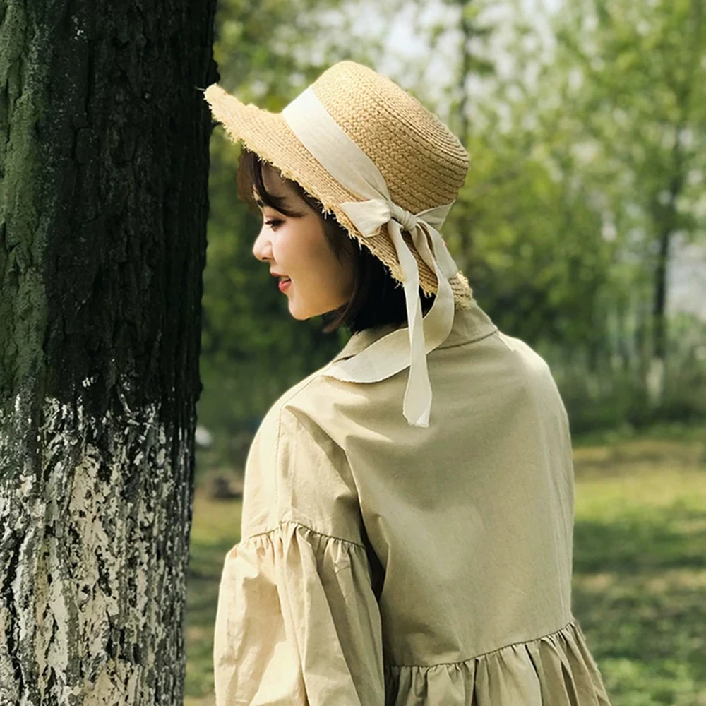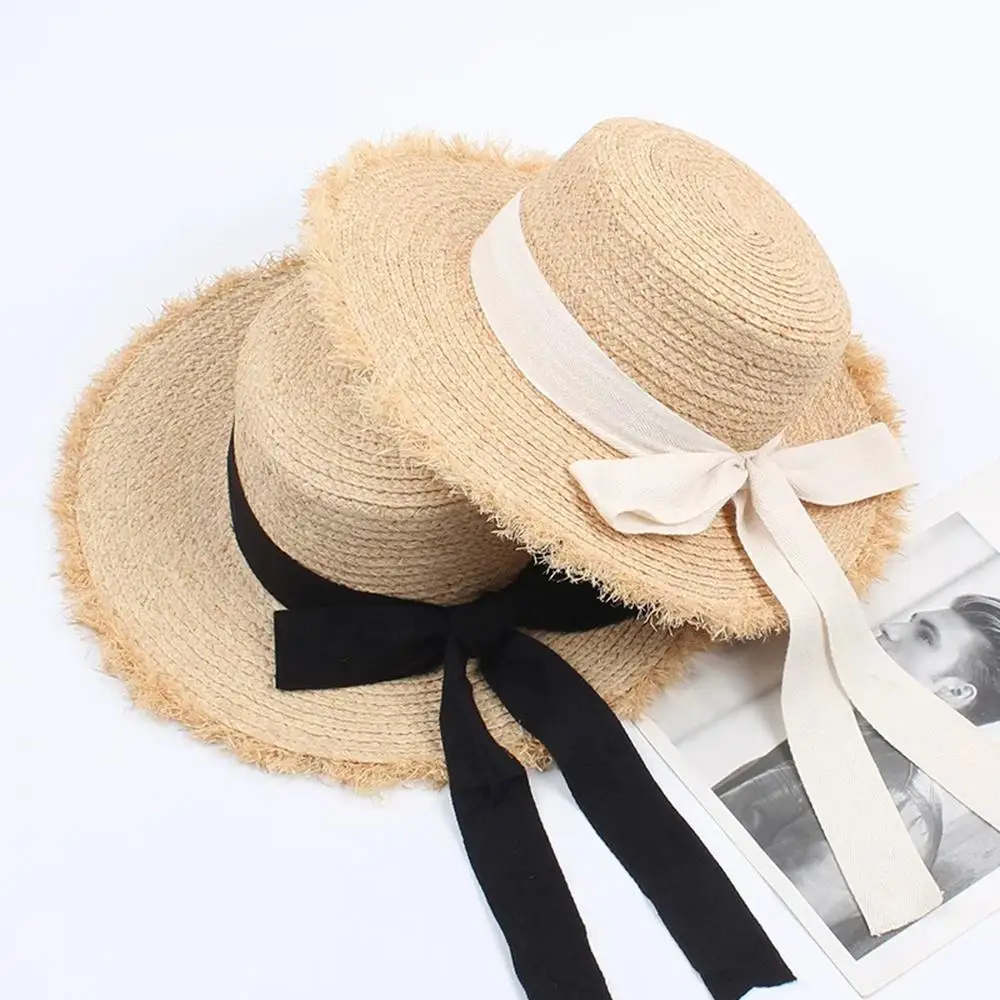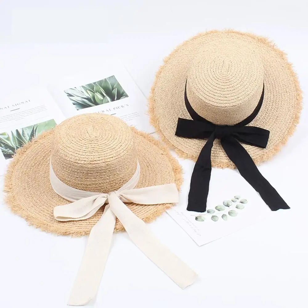 2021 Новая летняя Солнцезащитная шляпка с бантом 100% с перекрестными шнурками из волокна раффия головной убор темперамент плоские соломенные шляпы Для женщин Sea пляжный отдых для отдыха Солнцезащитная шляпа