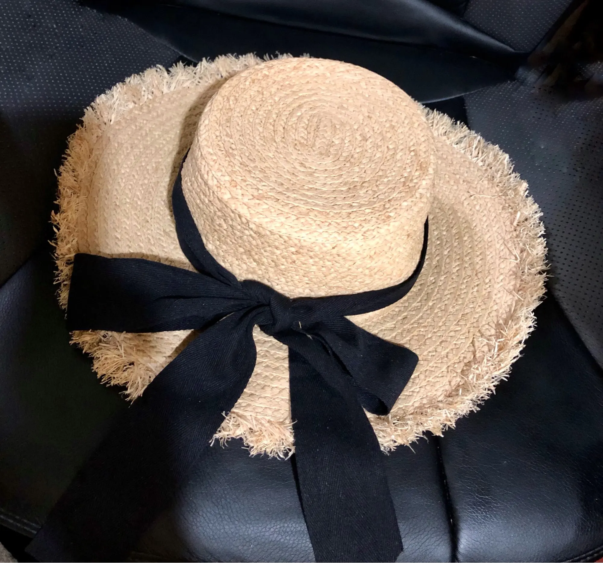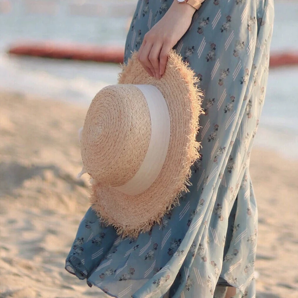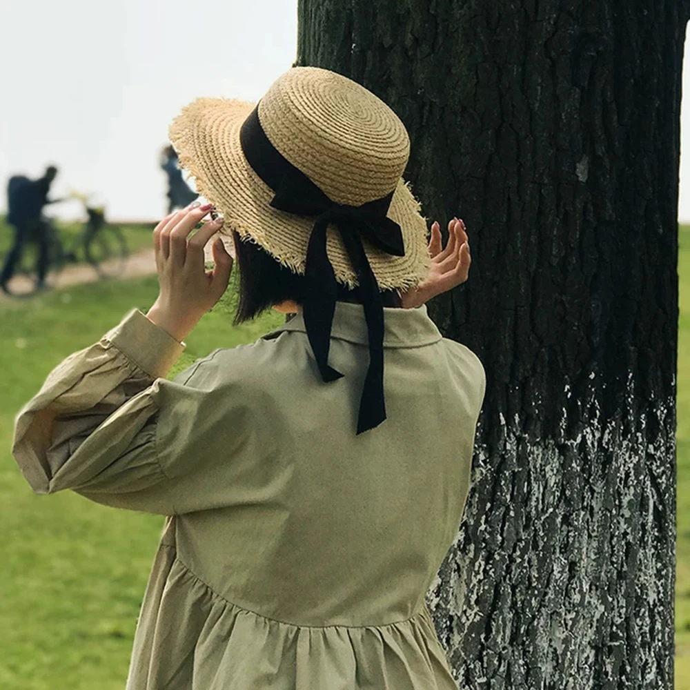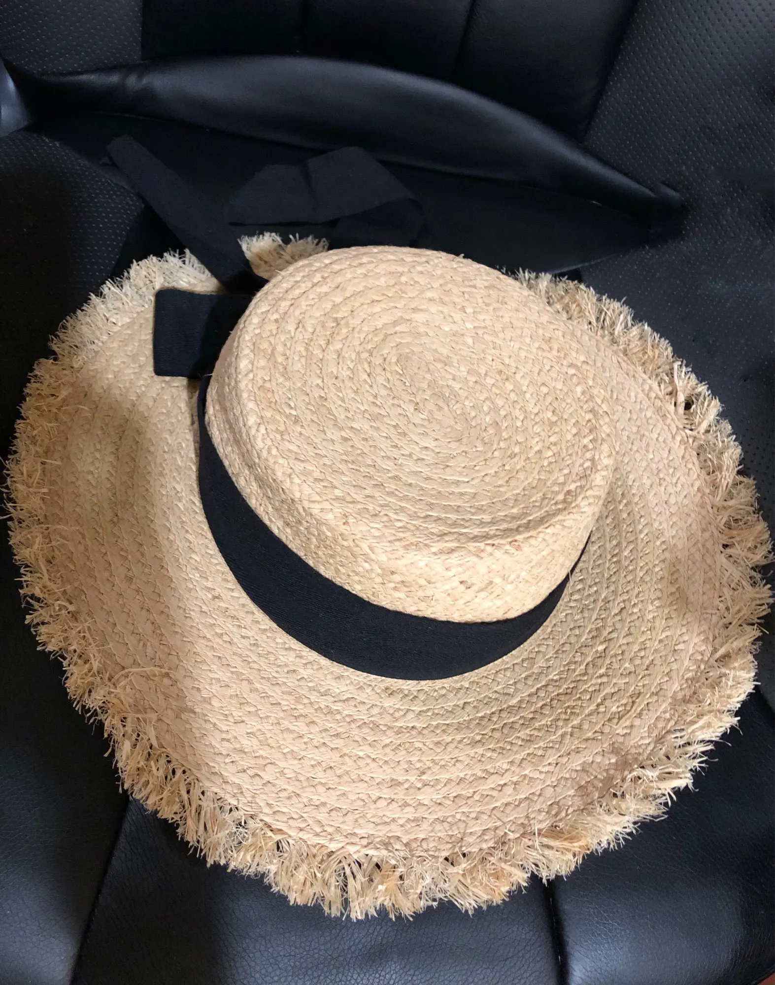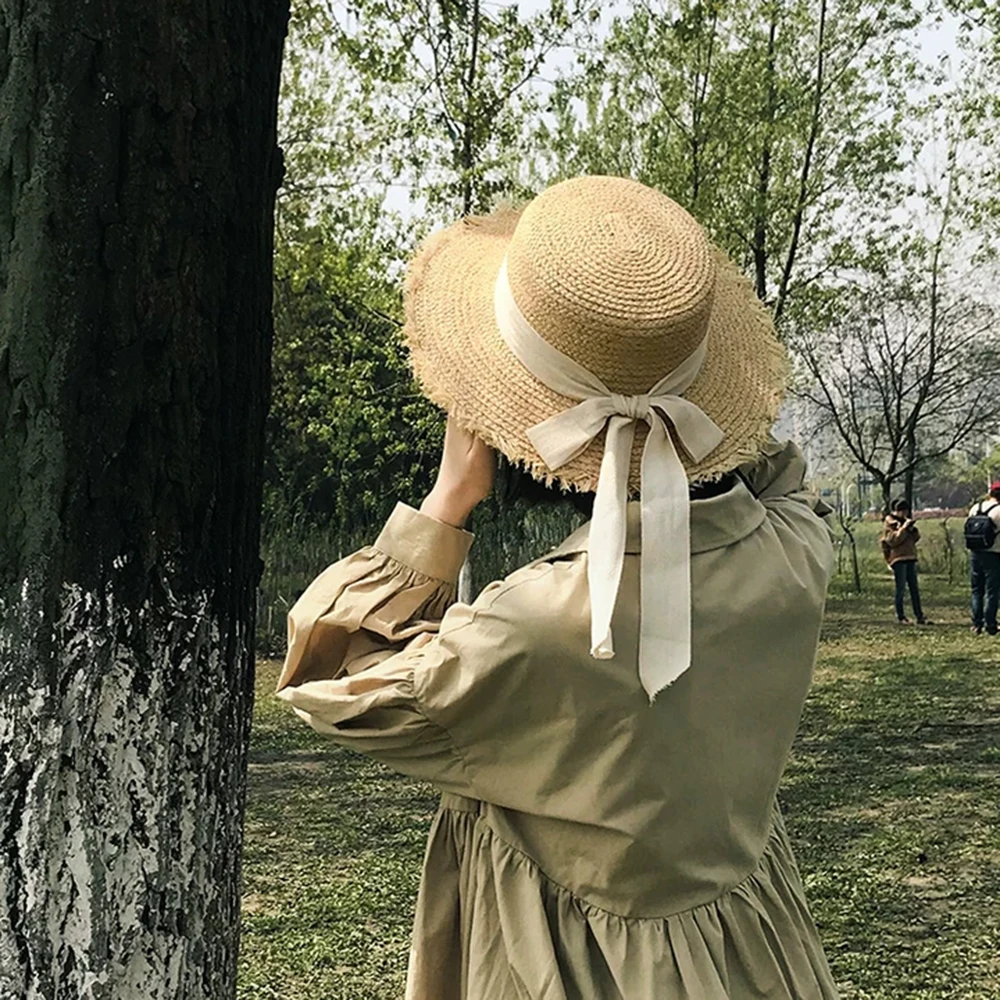 2021 Новая летняя Солнцезащитная шляпка с бантом 100% с перекрестными шнурками из волокна раффия головной убор темперамент плоские соломенные шляпы Для женщин Sea пляжный отдых для отдыха Солнцезащитная шляпа